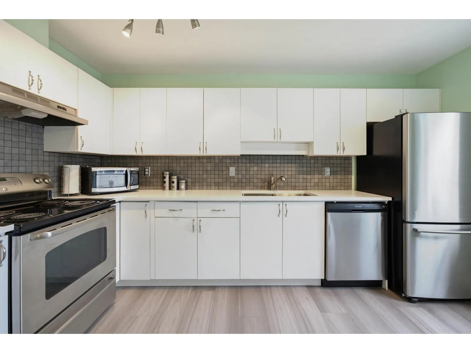 TOP FLOOR CORNER UNIT I FULLY RENOVATED I BRIGHT & PRIVATE Welcome to this stunning 1 ,053 sq. ft. 2 bed, 2 bath southwest-facing top floor corner home-offering exceptional privacy with no direct neighbours and an abundance of natural light throughout.Step inside and be impressed by soaring 13′ vaulted ceilings, expansive windows, and a skylight that flood the space with