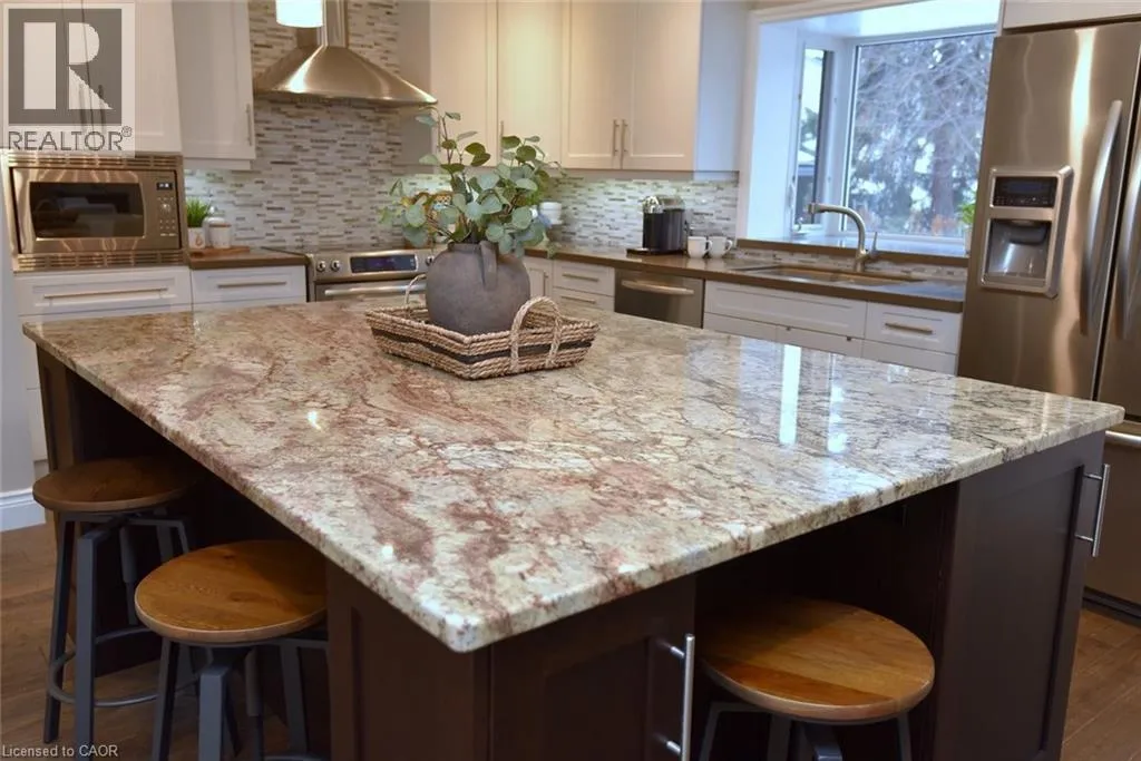 Welcome to this lovely open-concept home nestled in the highly sought after South Aldershot community. Set on a fully fenced, pool sized lot, this property offers the perfect blend of comfort, style, and functionality for modern living. Step inside to discover an exceptional open-concept main floor designed with entertaining in mind. The updated kitchen with classic white cabinetry,