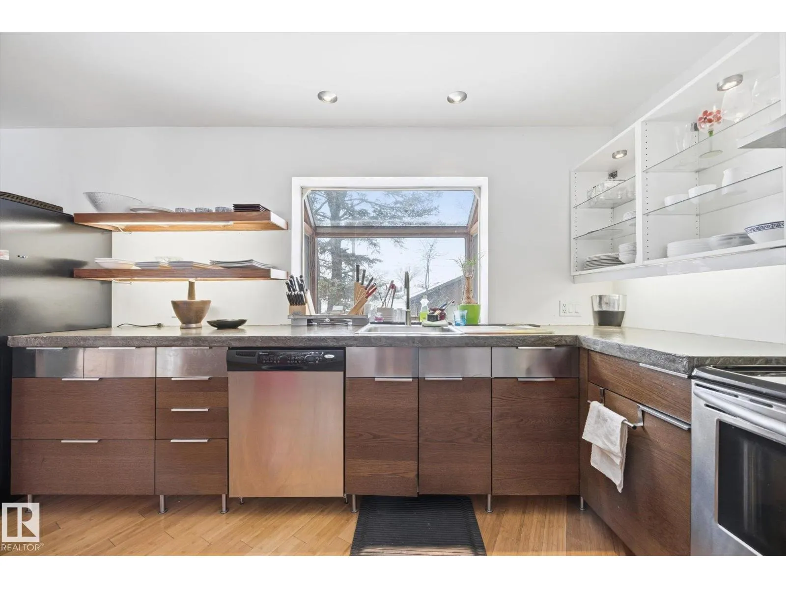 Nearly 1,500 sq. ft. in the heart of Queen Mary Park, situated on a huge corner lot with redevelopment potential and stunning downtown skyline views. This architecturally unique home features a striking tower addition with loft and sunroom, creating a one-of-a-kind living experience with a clean, Asian-inspired design. The redesigned kitchen offers concrete countertops and abundant cabinetry, seamlessly blending