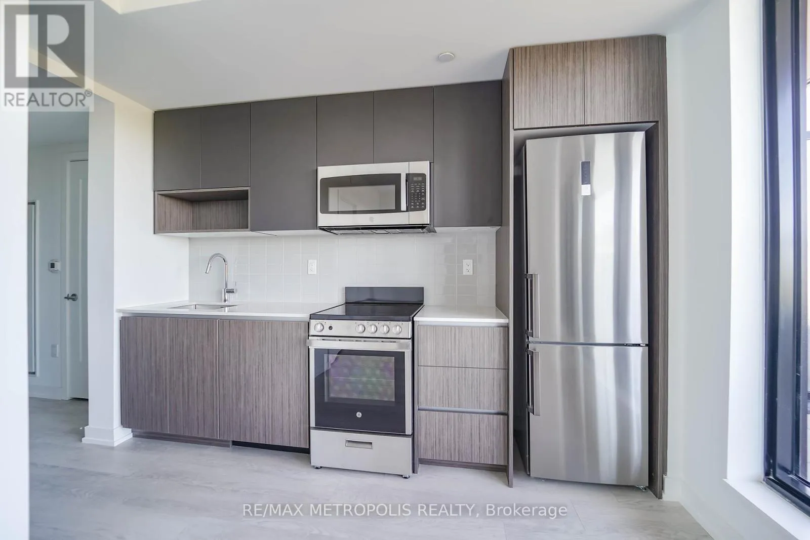 Welcome to a stylish, brand-new one-bedroom suite designed for modern city living. This bright, open-concept condo combines contemporary design with everyday comfort, featuring a sleek kitchen with stainless steel appliances, an inviting living and dining area, and an in-suite laundry for added convenience. Floor-to-ceiling windows fill the space with natural light, while a private balcony provides a quiet outdoor retreat.