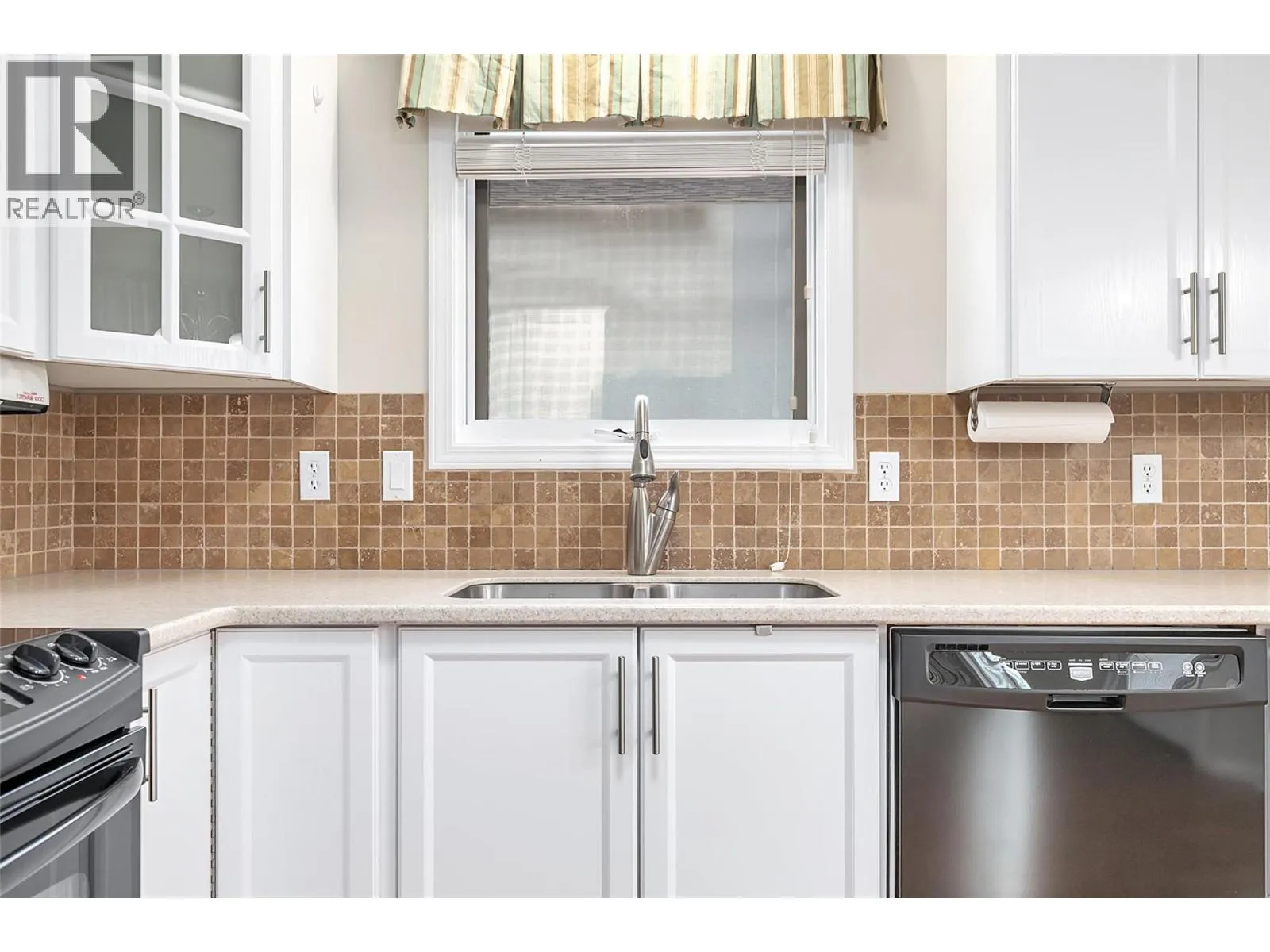 Beautiful resort style living in this 55+ centrally located complex. Sandstone is one of Kelowna’s most sought after gated communities, and this clean well kept, 2 bed, 2 bath rancher is nicely tucked within it. Home is just under 1400 square feet with tasteful upgrades, great appliances, lovely gas fireplace, central AC, built-in vac, double car garage and covered patio