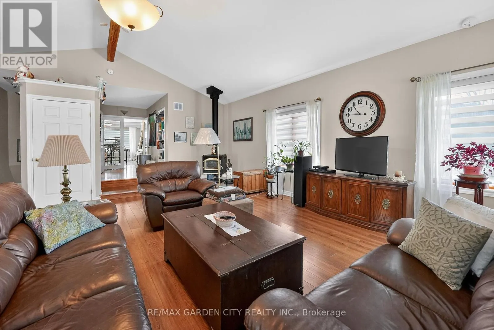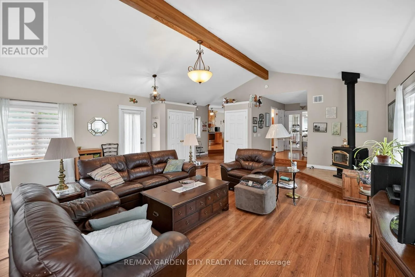 Amazing 2 + 2 bedroom 3 bath Brick Bungalow that has been meticulously cared for inside and out. Over 2600 sq. ft. of living area centered around a 21ft x 22 ft Living/Family room big enough for all those family gatherings. The room features cathedral ceilings, loads of natural light, wood stove and in-floor radiant heat. The main floor also
