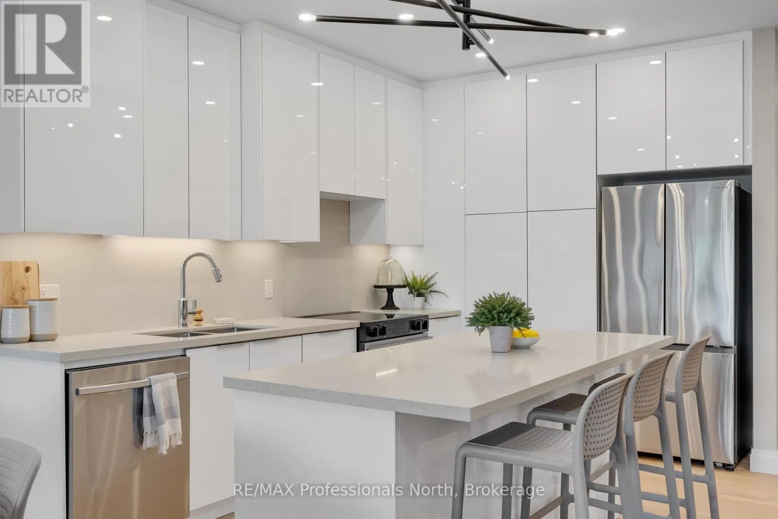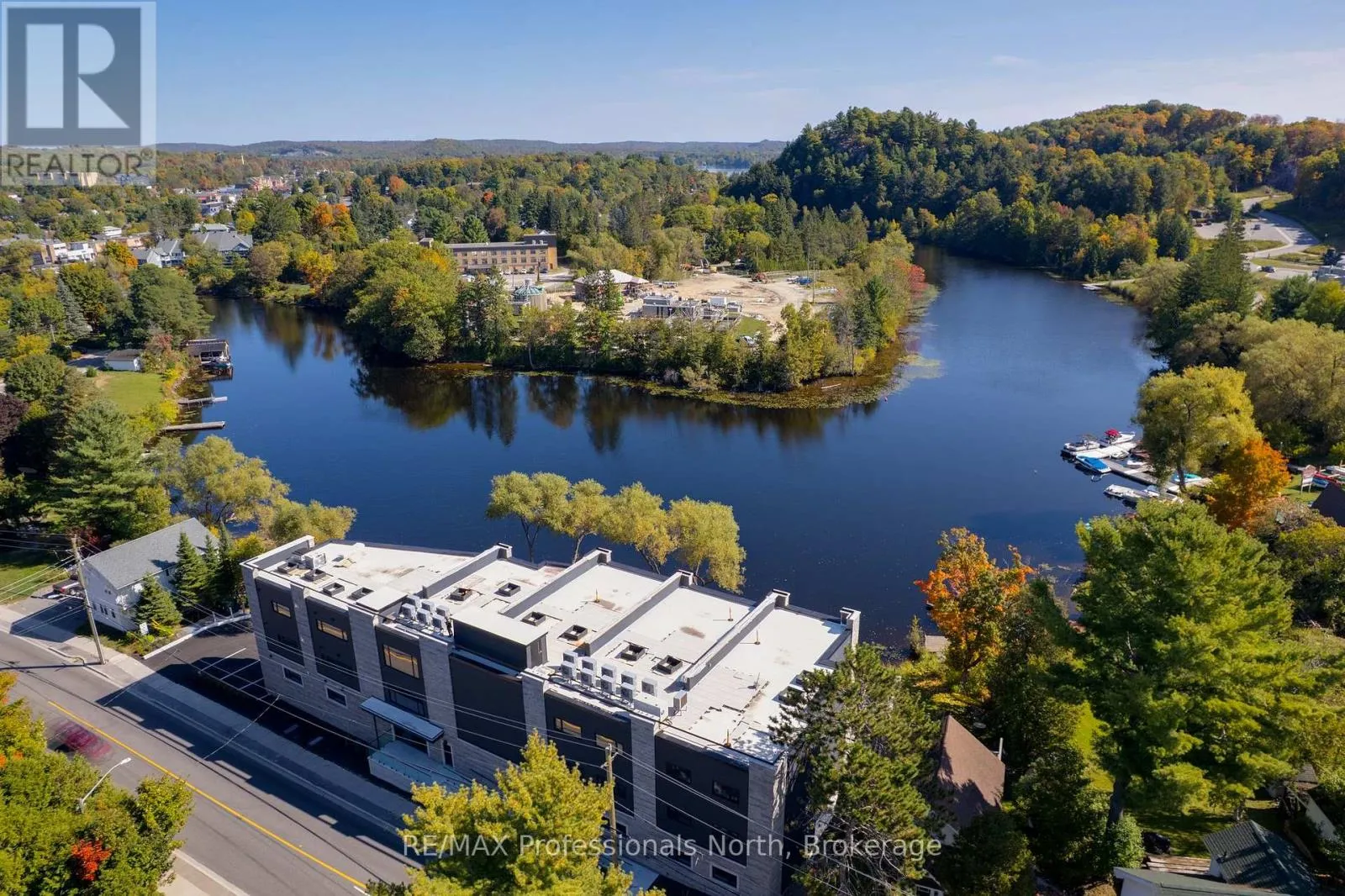 Welcome to Muskoka Riverbend Condominiums at 32 Brunel Road in Huntsville. This beautifully appointed 1-bedroom plus den suite offers a top floor view with an exceptional blend of comfort, style, and waterfront tranquility in an exclusive boutique building of just 15 residences.Suite 302 features a spacious open-concept layout with a modern kitchen, generous living and dining areas, and a private