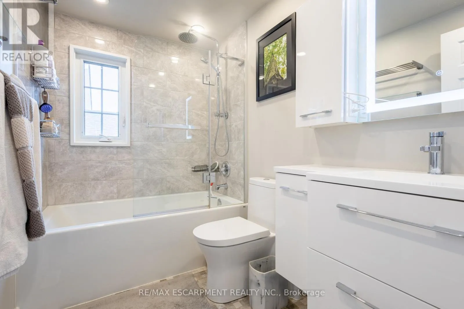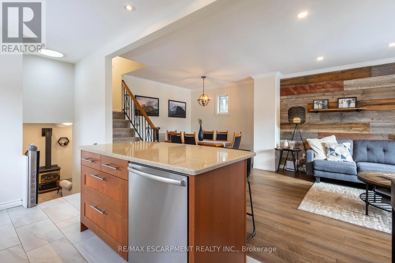 Welcome to this beautifully updated 4-level back-split nestled in a prime location on Stoney Creek Mountain. Step inside to discover an inviting living room and dining area that seamlessly flow into a newer kitchen, all with brand-new flooring throughout the main level and heated kitchen flooring. The bedroom level features a spacious primary bedroom, a second bedroom, and an updated