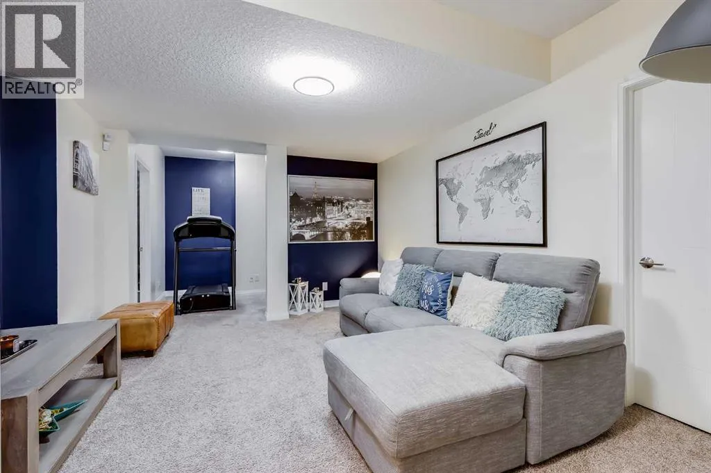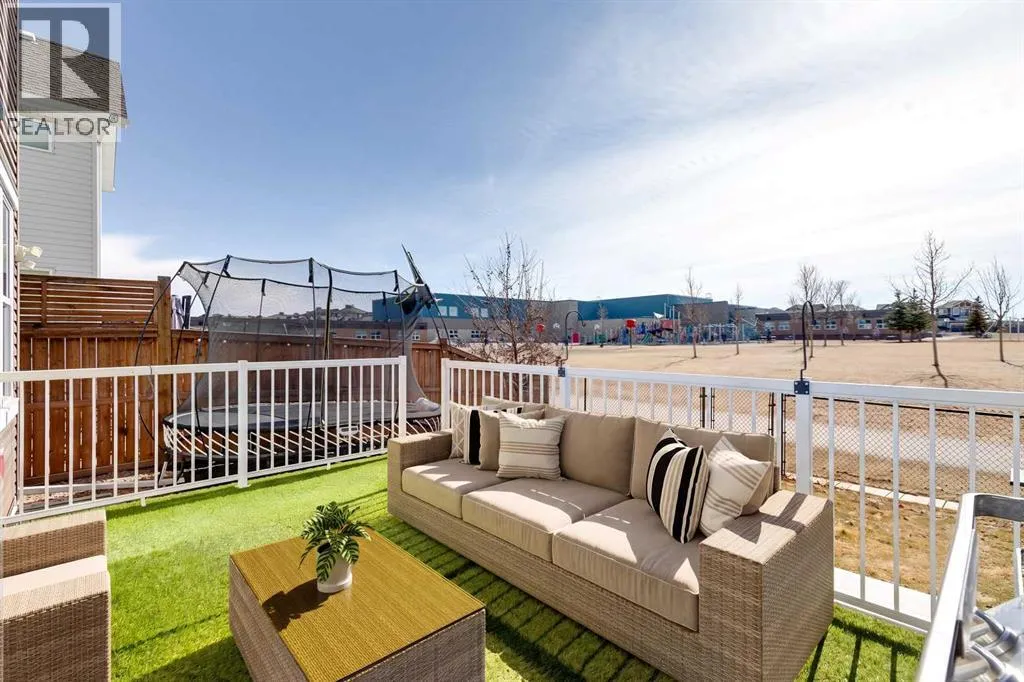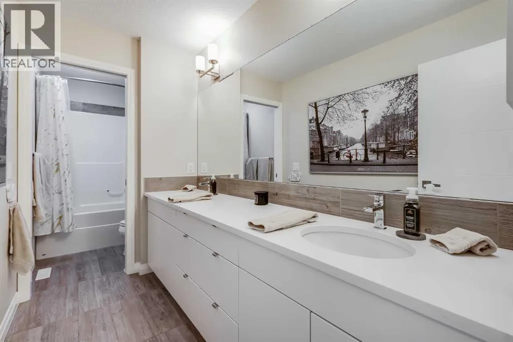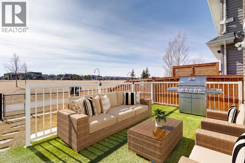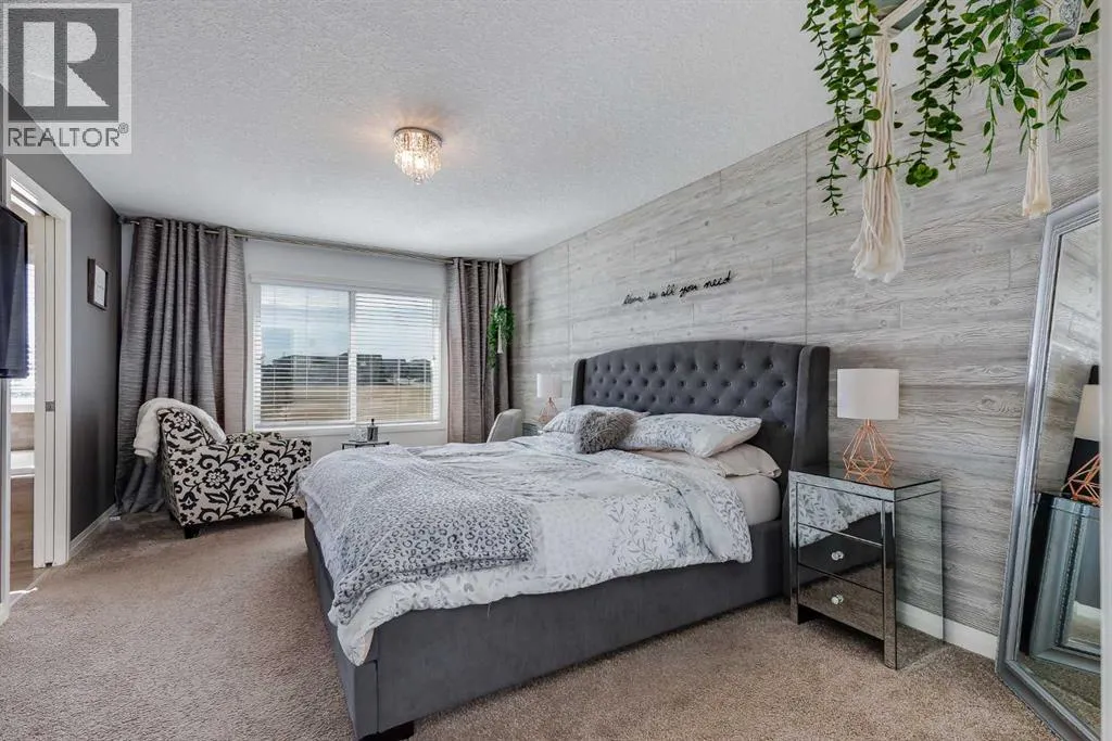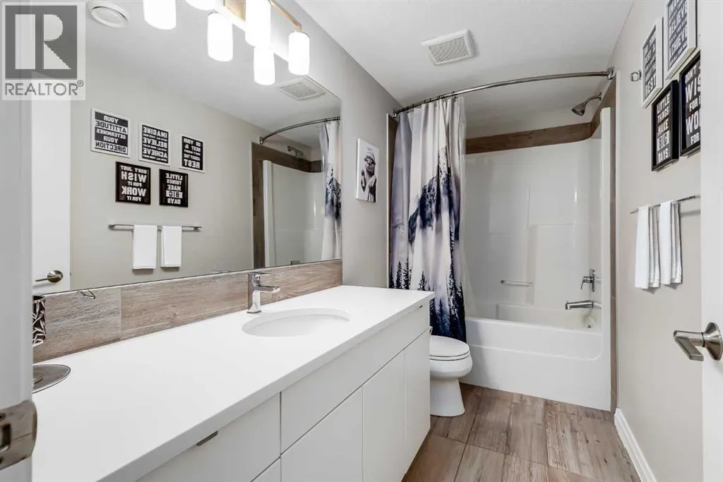 a spacious entryway and 9-foot ceilings, while large windows bring in an abundance of natural light. Durable wide plank hardwood flooring runs throughout, complementing the open-concept layout that connects the kitchen, dining, and living areas. The kitchen is designed with a focus on both style and function, featuring quartz countertops, stainless steel appliances including a gas cooktop (wired for electric cooktop as well) and built-in wall oven, sleek white cabinetry, and a refined backsplash. Two oversized islands offer generous space for preparation and casual seating, while abundant cabinetry and a walk-in pantry provide excellent storage. A built-in beverage area with a bar fridge adds an extra layer of convenience. The dining area comfortably accommodates gatherings and offers access to the back deck, while the living room is anchored by an electric fireplace with a stone surround. A two-piece powder room completes this level. Upstairs, a central bonus room separates the primary retreat from the additional bedrooms. The primary suite overlooks greenspace with views of the Rocky Mountains and includes a luxurious five-piece ensuite with a soaker tub, standalone shower, dual vanities with individual sinks, a makeup station, and two walk-in closets. Two additional bedrooms are generously sized and share a five-piece bathroom with dual sinks and a separate area for the tub, shower, and toilet. A walk-in linen closet and a dedicated laundry room add to the practicality of this level. The fully finished basement expands the living space with a recreation and media a rea, two more bedrooms, each with their own walk-in closet, and a four-piece bathroom. There is also plenty of storage throughout. Outside, the south-facing backyard enjoys the sun all day long and features a deck and a grass area suited for a fire pit, play space, or entertaining. There is direct access to walking and biking pathways and the surrounding greenspace. Living in Auburn Bay means exclusive access to the lake and community amenities including a beach, tennis courts, and year-round activities. The home backs onto a field connecting Prince of Peace and Lakeshore Schools, is a short walk to Auburn Bay School, and minutes from JCS High School, Seton YMCA & library, South Health Campus, shopping, dining, major roadways, parks, golf courses, and an off-leash dog park. Check out the floor plans and 3D Tour! (id:64429)