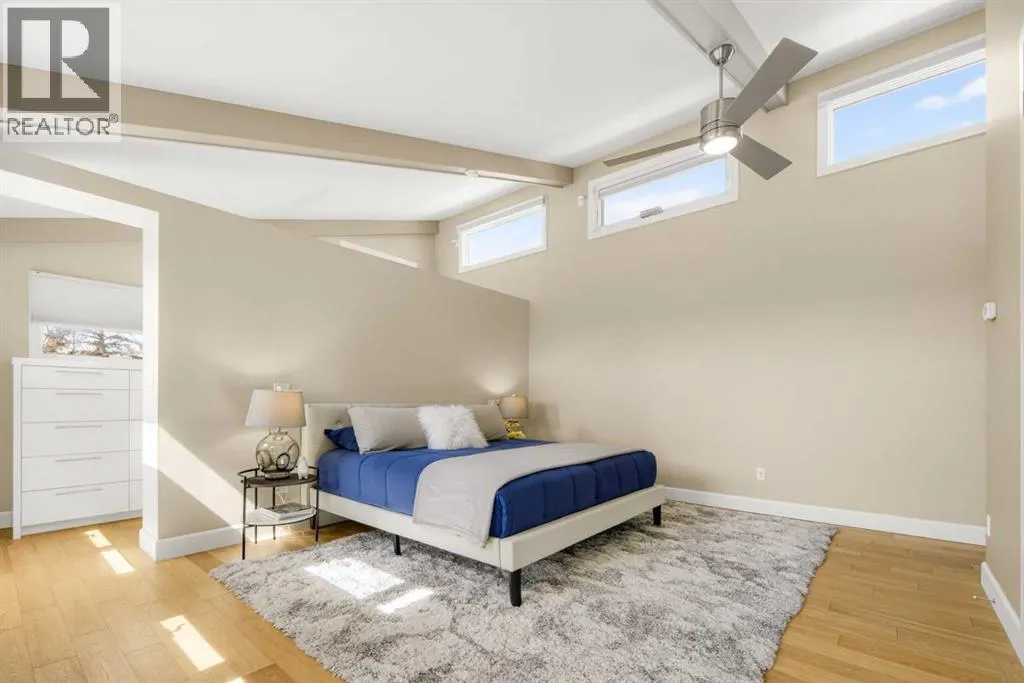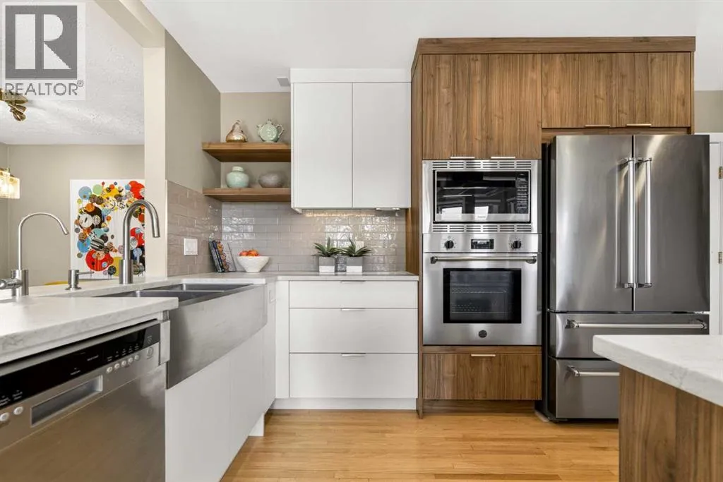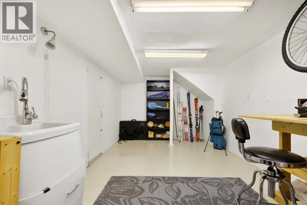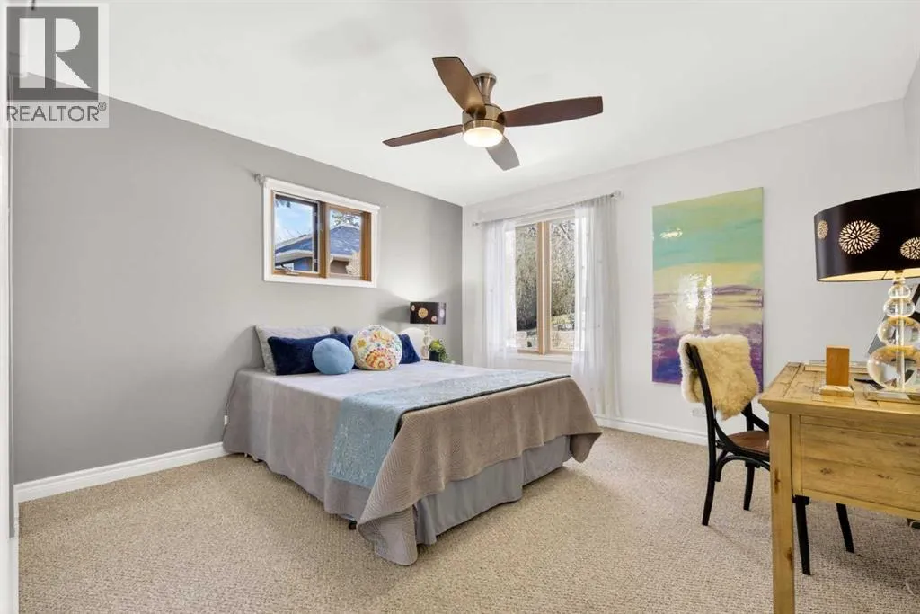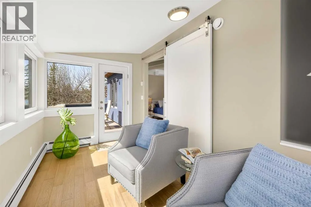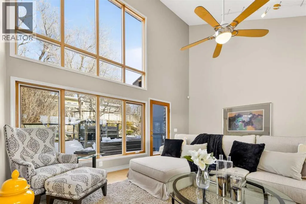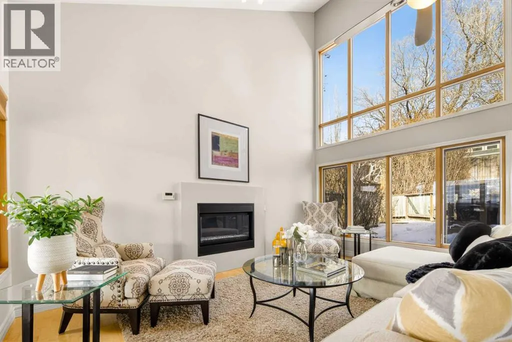 to execute the dramatic primary suite, while Marvel Kitchens designed the heart of the home, a sophisticated culinary hub focused on performance. It features a massive quartz island with glimpses of the downtown skyline, high-end appliances, clever cabinetry, and a dedicated coffee bar area. Adjacent, the Davignon designed studio, built over the garage space, is an exercise in intentional, architectural detail; defined by soaring ceilings and an expansive gas fireplace, this light-filled space offers independent front and back exterior access, serving effortlessly as a professional home office option or the home’s primary gathering hub. Ascend to the primary suite, a masterwork by William Blake Homes. The private balcony offers cinematic, dual-directional views of both the city skyline and the Rocky Mountains. A study in quiet luxury, the suite features 12ft vaulted ceilings, a sunroom, and a meticulous 5-piece ensuite where heated floors extend even into the shower, complemented by a deep soaker tub and heated towel rack. The remainder of the upper level houses 2 additional generously-sized bedrooms with substantial closets, and a large family bath, all positioned at the rear of the home for ultimate privacy. The lower levels are equally purposeful: the north side offers a self-contained retreat with a family room, bedroom, bath, kitchenette type space, and laundry, ideal for teens, nannies, or generational living. The south side transitions into the ultimate active base, featuring a home gym (or 5th bedroom) and a dedicated gear room for ski tuning, bike maintenance or stora ge, complete with a cold room for wine. This leads to the attached triple garage, a core feature for the collector, redefined with over-height ceilings to accommodate a car lift and an innovative tandem bay. Outdoor living is prioritized through a series of defined spaces, beginning with a partially covered, south-facing patio off the entrance that facilitates effortless alfresco dining or a glass of wine while taking in the views. The private, tiered backyard is an entertainment retreat featuring multi-level decking, a hot tub, elevated flat space to play, and a double parking pad off the back lane. The front yard presents a sophisticated, climate-conscious xeriscape for a low-maintenance lifestyle. Located within walking distance to amenities and offering rapid access to the Children’s and Foothills Hospitals, the U of C, The Calgary Winter Club and downtown, the home is finished with enduring materials, including a 50-yr blue metal roof, upgraded insulation, and an efficient multi-zoned heating system. (id:62650)