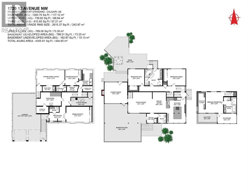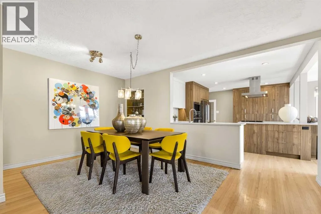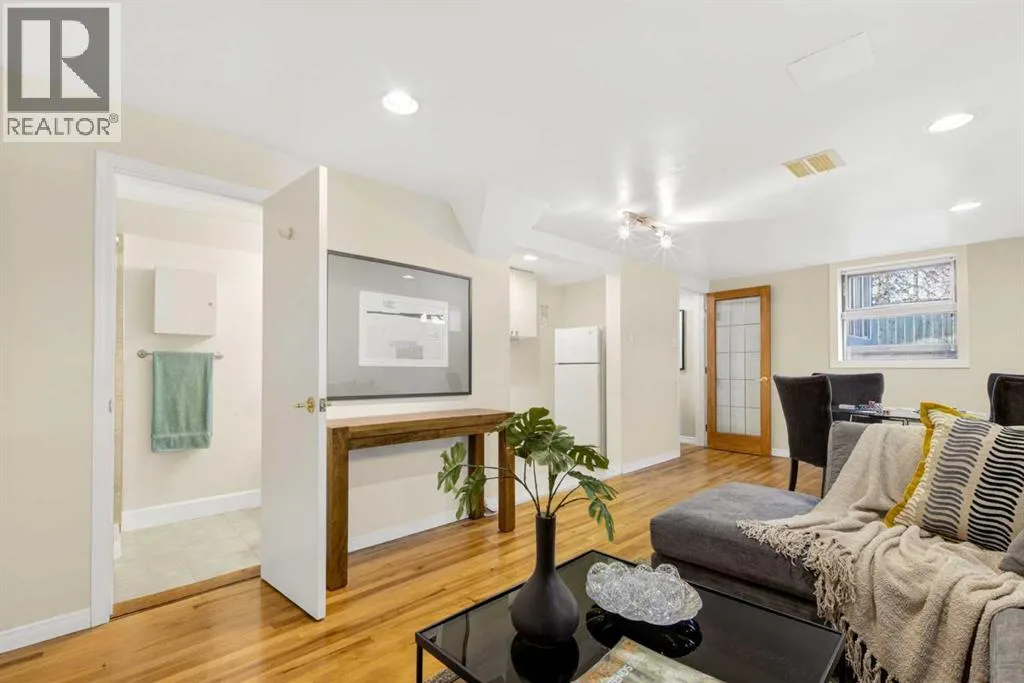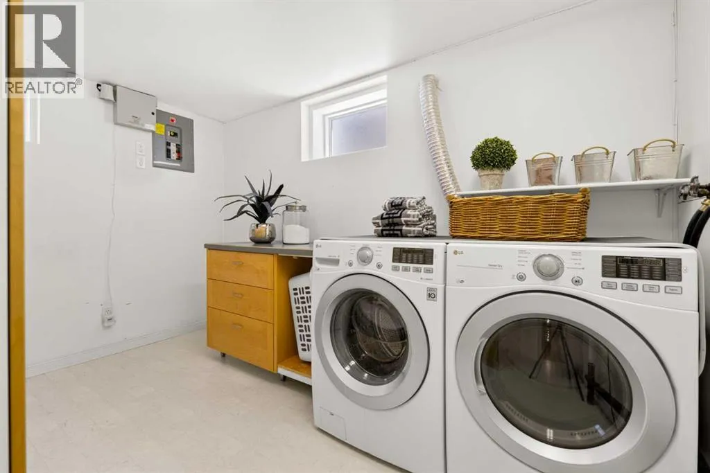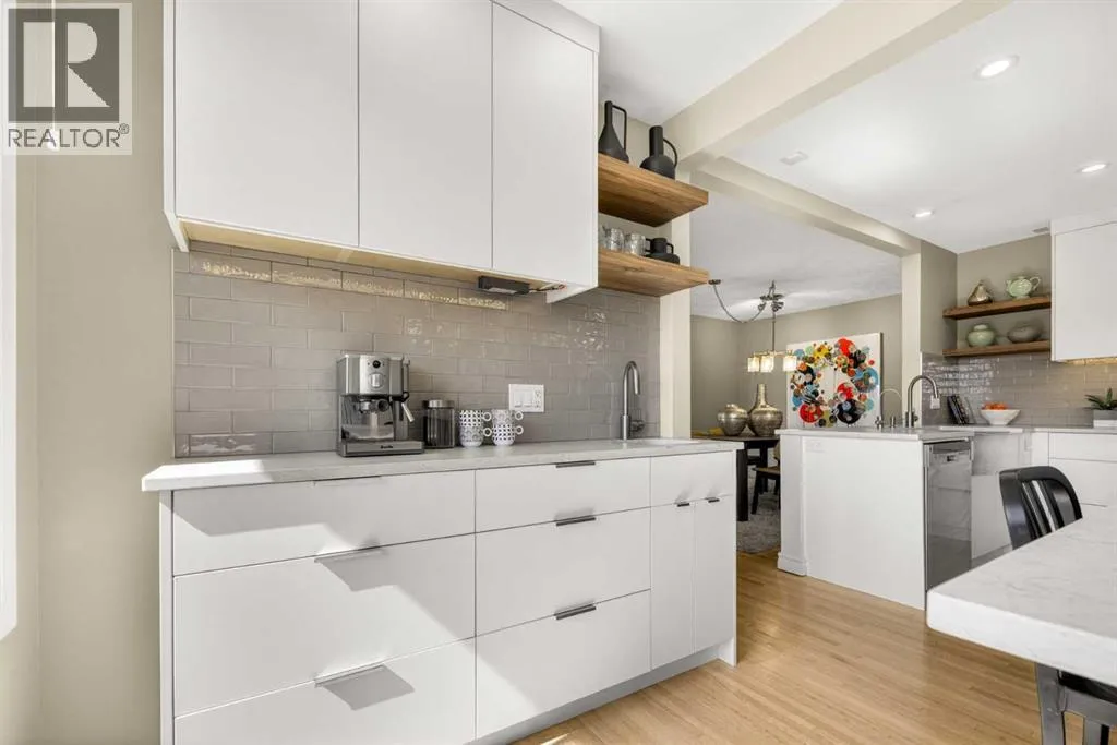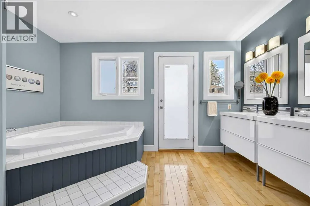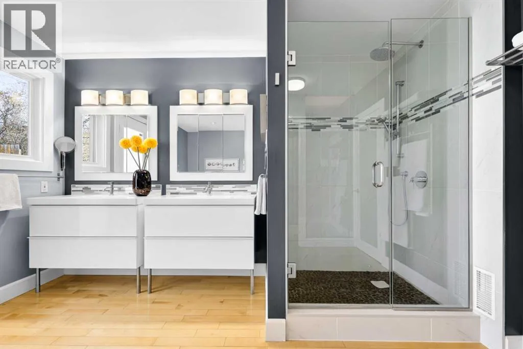 to execute the dramatic primary suite, while Marvel Kitchens designed the heart of the home, a sophisticated culinary hub focused on performance. It features a massive quartz island with glimpses of the downtown skyline, high-end appliances, clever cabinetry, and a dedicated coffee bar area. Adjacent, the Davignon designed studio, built over the garage space, is an exercise in intentional, architectural detail; defined by soaring ceilings and an expansive gas fireplace, this light-filled space offers independent front and back exterior access, serving effortlessly as a professional home office option or the home’s primary gathering hub. Ascend to the primary suite, a masterwork by William Blake Homes. The private balcony offers cinematic, dual-directional views of both the city skyline and the Rocky Mountains. A study in quiet luxury, the suite features 12ft vaulted ceilings, a sunroom, and a meticulous 5-piece ensuite where heated floors extend even into the shower, complemented by a deep soaker tub and heated towel rack. The remainder of the upper level houses 2 additional generously-sized bedrooms with substantial closets, and a large family bath, all positioned at the rear of the home for ultimate privacy. The lower levels are equally purposeful: the north side offers a self-contained retreat with a family room, bedroom, bath, kitchenette type space, and laundry, ideal for teens, nannies, or generational living. The south side transitions into the ultimate active base, featuring a home gym (or 5th bedroom) and a dedicated gear room for ski tuning, bike maintenance or stora ge, complete with a cold room for wine. This leads to the attached triple garage, a core feature for the collector, redefined with over-height ceilings to accommodate a car lift and an innovative tandem bay. Outdoor living is prioritized through a series of defined spaces, beginning with a partially covered, south-facing patio off the entrance that facilitates effortless alfresco dining or a glass of wine while taking in the views. The private, tiered backyard is an entertainment retreat featuring multi-level decking, a hot tub, elevated flat space to play, and a double parking pad off the back lane. The front yard presents a sophisticated, climate-conscious xeriscape for a low-maintenance lifestyle. Located within walking distance to amenities and offering rapid access to the Children’s and Foothills Hospitals, the U of C, The Calgary Winter Club and downtown, the home is finished with enduring materials, including a 50-yr blue metal roof, upgraded insulation, and an efficient multi-zoned heating system. (id:62650)