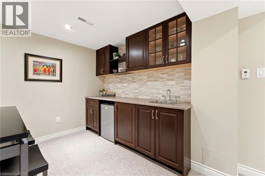 naturally gathers. The kitchen sits at the centre of it all, offering warm wood cabinetry, breakfast seating, and an easy connection to the spaces where daily life unfolds. Sliding doors open to an expansive deck, creating a seamless extension of the home for summer barbecues, outdoor dinners, and relaxed afternoons in the backyard. Beyond the deck, the lot opens up in a way that feels increasingly rare, deep, private, and backing onto green space and trails. There is room here to play, garden, entertain, or simply enjoy the quiet of a mature setting with nature just beyond. Upstairs, the bedrooms feel comfortable and tucked away, including a spacious primary retreat and an updated bathroom with a fresh, timeless finish. The finished lower level adds another layer of flexibility, with generous space for movie nights, games, a home gym, hobbies, or casual evenings around the fireplace and wet bar. What makes this home especially compelling is the way it balances comfort at home with connection to everything people love about Bronte. From here, it is easy to enjoy walks by the lake, time at Bronte Pier, waterfront restaurants, local shops, and the everyday charm of this well-loved Oakville neighbourhood. Thoughtfully maintained over time, this is a home with warmth, substance, and room to live well, inside and out. (id:62650)