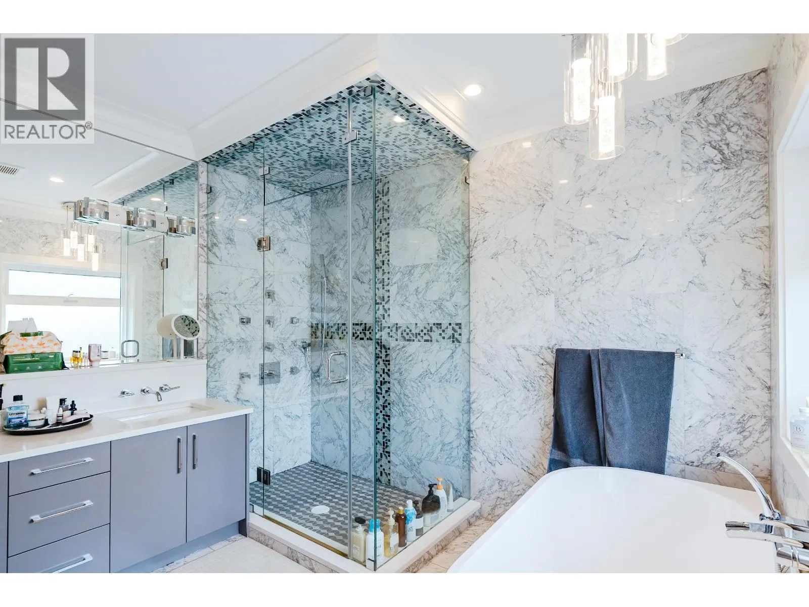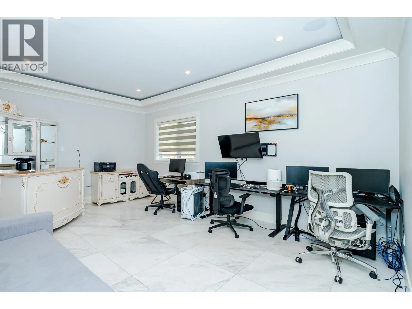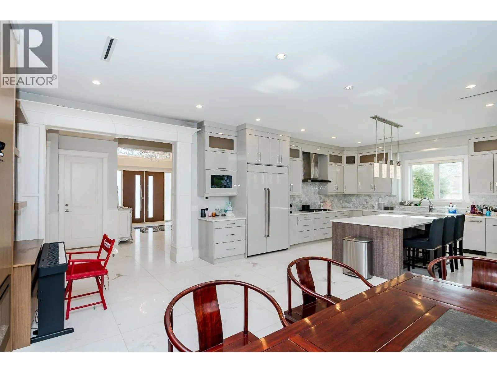 Experience modern luxury in this custom-built masterpiece in Richmond. This 3,236 sqft home features a grand foyer leading to a stunning living room with soaring ceilings and a floor-to-ceiling stone fireplace. The open-concept floor plan includes a chef’s kitchen with a massive island and a fully equipped wok kitchen. The main level offers ultimate flexibility with a bright office that