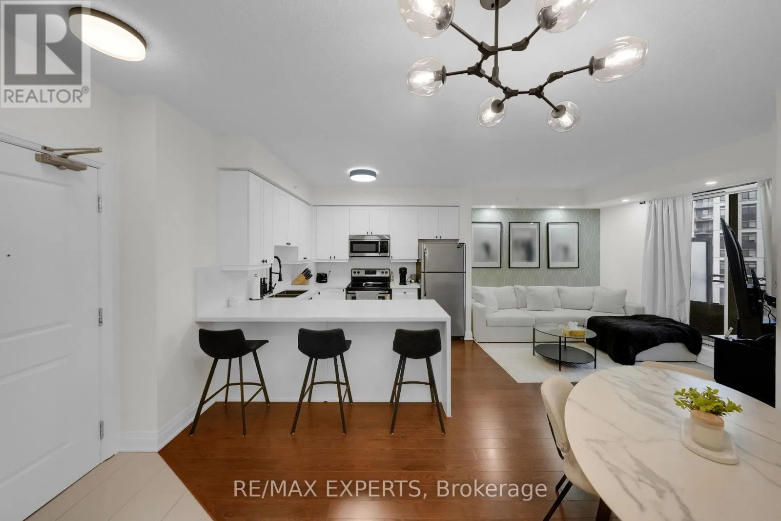 Welcome To Allegra Condos In The Heart Of Vaughan! Beautifully Maintained 1 Bedroom, 1 Bathroom Suite Offering A Smart Open-Concept Layout, 9 Ft Ceilings, And Stylish Updated Finishes Throughout. Renovated Kitchen Features Stainless Steel Appliances, A Granite Waterfall Countertop, And Breakfast Bar Overlooking Bright Living Space – Perfect For Comfortable Everyday Living And Easy Entertaining. Spacious Bedroom, Upgraded Bathroom, Ensuite
