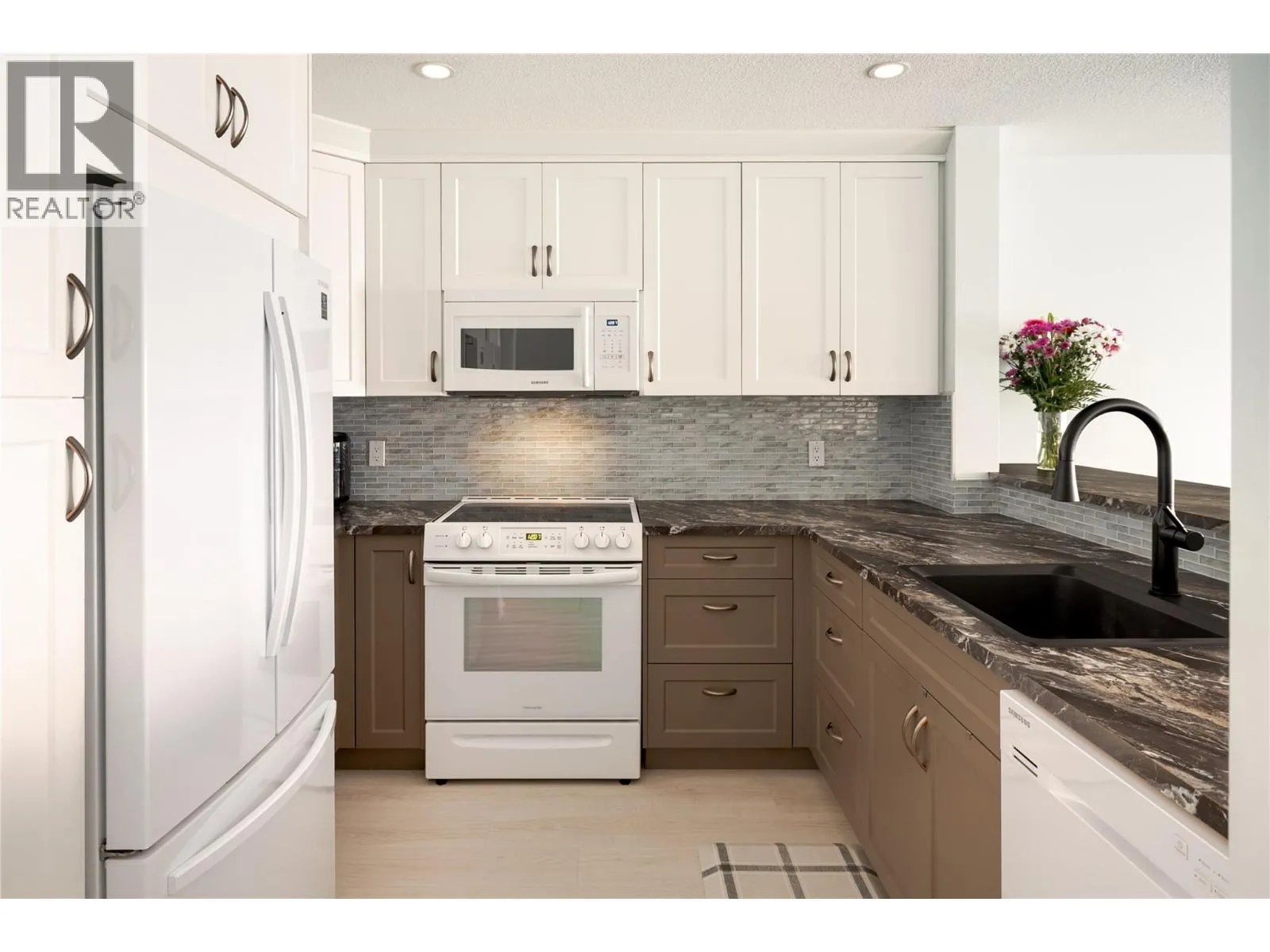 Bright, beautifully updated, and located in one of Kelowna’s most sought-after 55+ communities, this spacious 1 bedroom + sunroom residence offers the ease of condo living without compromise. Thoughtfully renovated throughout, the home features new flooring, a modernized kitchen with extensive cabinetry, updated countertops, stylish backsplash, refreshed bathroom, and in-suite laundry with added storage. The generous open-concept layout offers exceptional