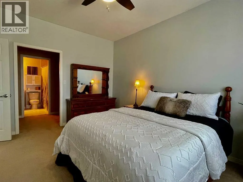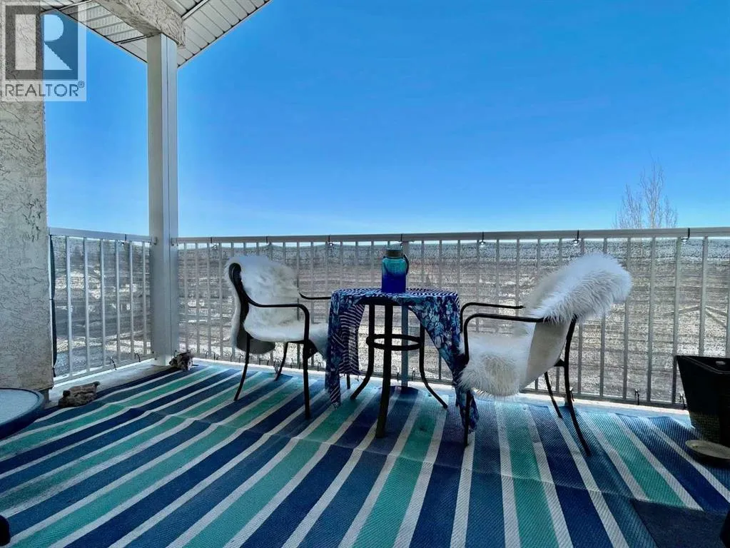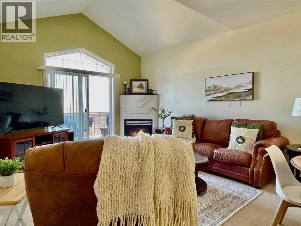 Top-floor condo with beautiful views and a covered balcony. This bright and well-maintained 1-bedroom plus den unit at 303-1095 Timberline offers an open layout with vaulted ceilings, a gas fireplace, an eat-up breakfast bar, in-floor heating, and in-suite laundry. The primary bedroom includes a walk-in closet, and the main bathroom features a deep soaker tub.A standout feature of this home