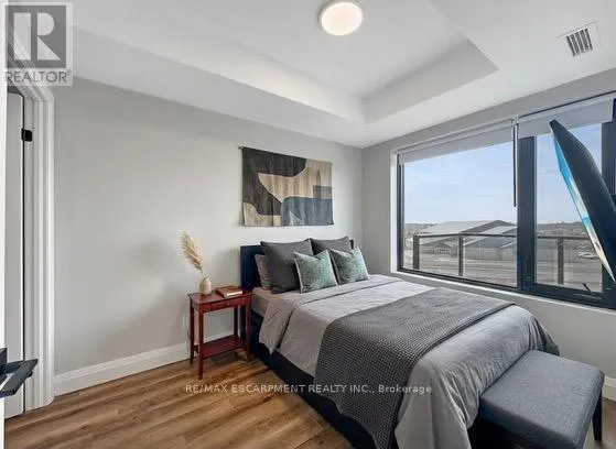 is thoughtfully designed with ensuite privileges that connect to the 4-piece main bathroom. The kitchen comes equipped with upgraded stainless steel appliances, it highlights Winger’s high-end cabinets and stunning quartz countertops with a peninsula. The open concept living room, seamlessly flowing from the kitchen, extends to a private balcony. A utility room includes a convenient stacked washer and dryer. This unit comes with one parking space and one locker. (id:62650)