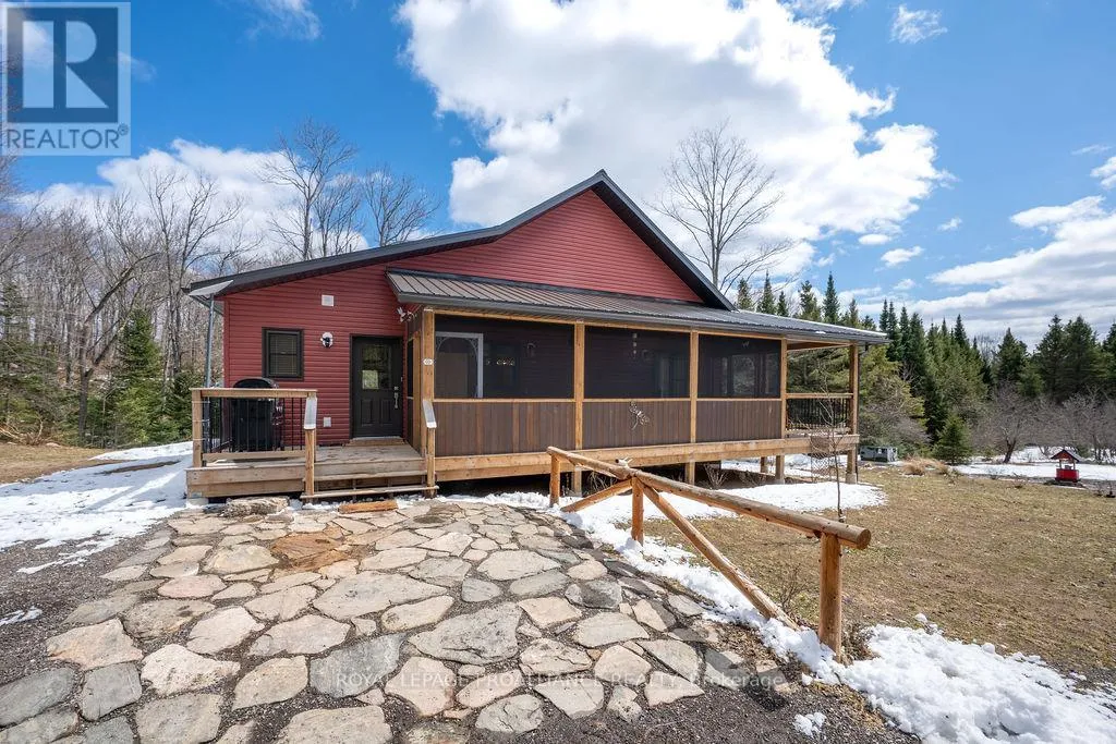 Whether you’re searching for a peaceful retreat or a special place to enjoy a slower pace of life, this property offers an exceptional opportunity to do just that.Tucked beyond the trees at the end of a private drive, this beautifully crafted walkout bungalow sits on over 16 acres in the heart of the Canadian Shield. Built in 2023 with quality