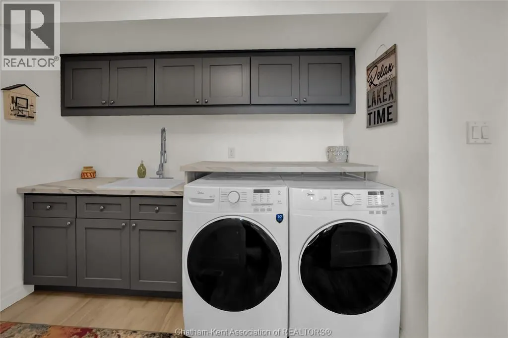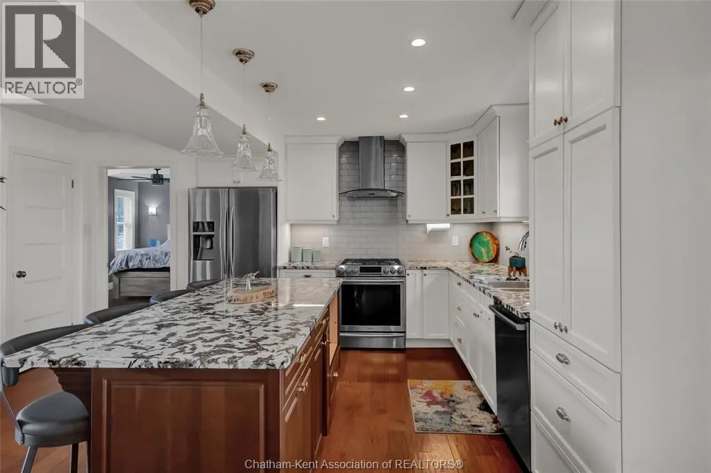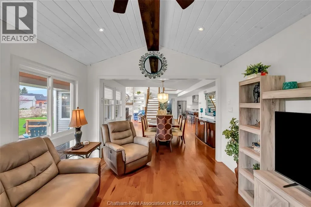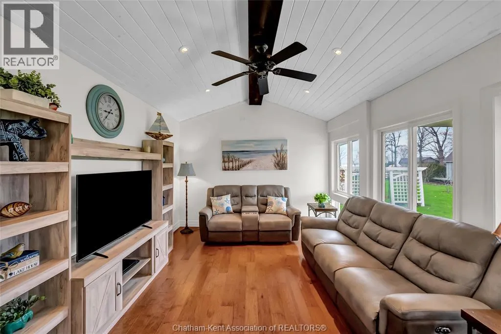 Stunning family home or cottage with canal access to Rondeau Bay and Lake Erie. Built in 2017 and featuring 4 bedrooms, 2.5 bathrooms and 2 main floor living rooms. At the heart of the home is a gorgeous open concept living room and kitchen with a 16 foot vaulted ceiling over the living room, a 2 storey wall of windows