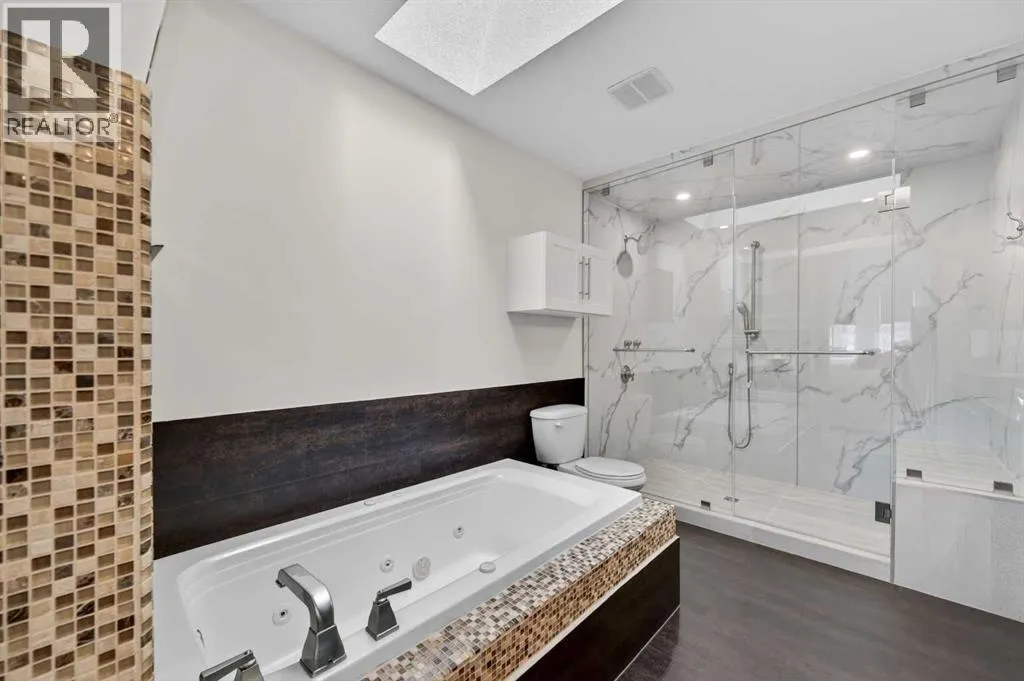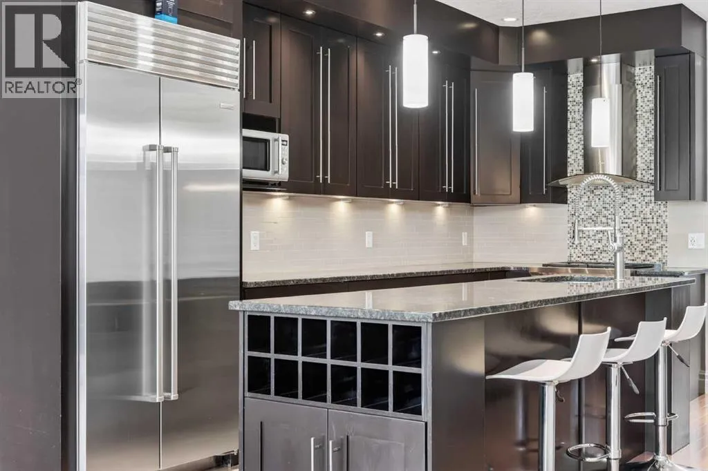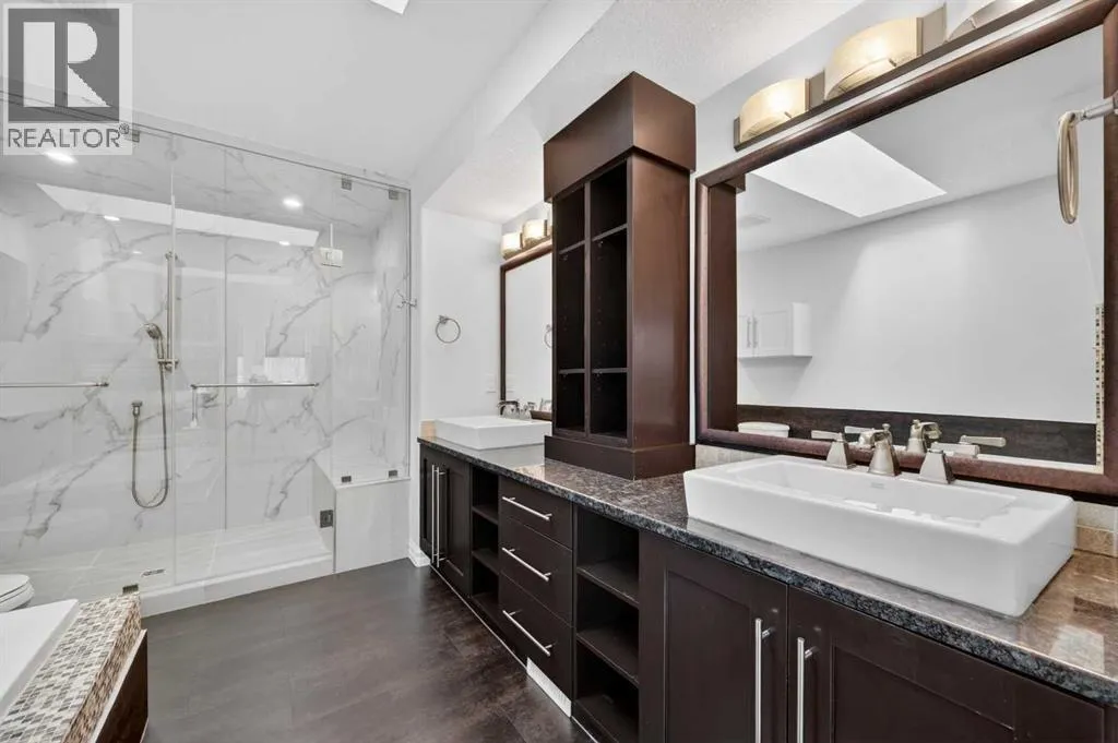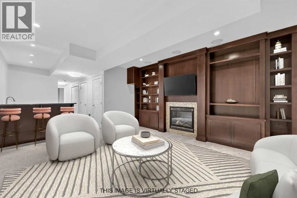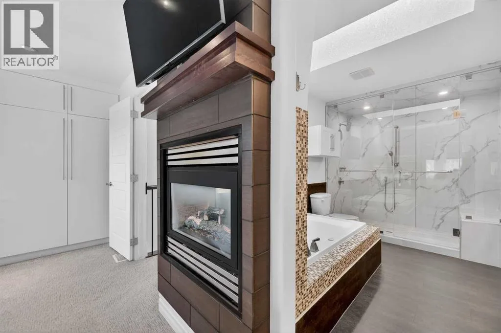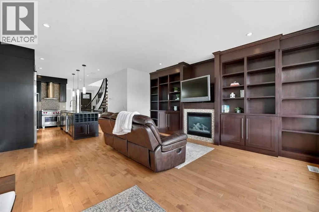 Hardwood Through the Main Level, Built-in Cabinetry and Wall Closets, 3 Gas Fireplaces. Front Entrance has Built-in Wall Closet and is Showcased by the Beautiful Curved Staircase. Large, Bright Dining Room is just off the Front Foyer and allows for use as stand-alone Dining Room or combination Dining Room with Sitting Area. The Gourmet Kitchen includes Top of the Line Appliances – Wolf Gas Range, Sub-Zero Fridge, Bosch Dishwasher – Beautiful Granite Countertops, Large Island with Built-in Wine Rack and Breakfast Bar, Richly Stained Cabinets. Kitchen opens to the Spacious Living Room with Built-In Cabinets and Shelving surrounding a Gas Fireplace. Breathtaking Primary Bedroom features Vaulted Ceiling, Wall-to-Wall Built-in Closet, Balcony for Morning Coffee or Evening Glass of Wine, Beautiful Two-Sided Gas Fireplace that is shared with the Gorgeous Ensuite – Large, remodeled Shower, Dual Vanities. Two Good-Sized Bedrooms, Main 4 Piece Bathroom and Laundry complete the Upper Level. Basement is Developed to same High Standards as the rest of the Home – Great Family Room with more Built-in Cabinetry and 3rd Gas Fireplace, Wet Bar, Built-In Speakers plus Full 4 Piece Bathroom and a 4th Bedroom which is perfect for Teenagers or Guests. Low Maintenance Backyard starts with the Raised Deck with Built-In BBQ Centre & Warming Oven, Hot Tub & Privacy Screen accessed from the Living Room. Under Deck Storage, Double Detached Garage, Paved Back Alley and Exposed Concrete Front Walkway. But this is Not All! In the past few years the owners have replaced the Furnace, installed a Tankless Water System, installed a R adon Mitigation System, Air Exchanger was set up, Primary Shower was Redone, Rebuilt the Built-in BBQ area with new BBQ, Installed 40 year Shingles in 2024 plus replaced the Washer, Dryer & Dishwasher. This Wonderful Family Home is located within walking distance to the Altadore School, Parks plus trendy Marda Loop restaurants & shops and much more! Easy access in and out of the community. This is a winner! (id:62650)