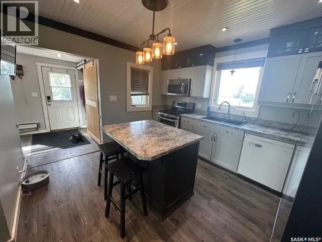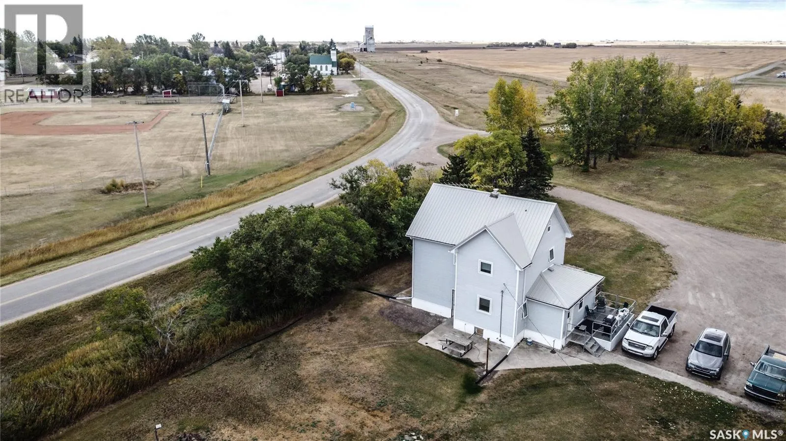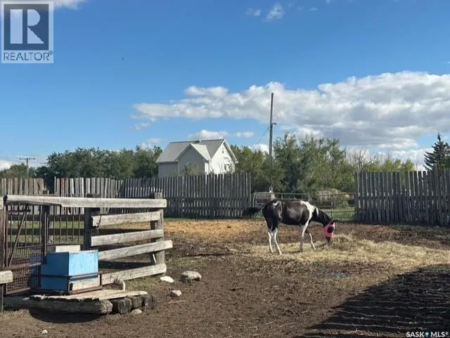 Located directly across from the community of Holdfast with K-12 school, grocery store, community centre, bank, bar, and insurance office, and only 15 minutes from Last Mountain Lake. The property is fully fenced for livestock and set up with town water plus a private well, a septic system with pump-out, and two electric-heated water bowls. Corrals, a large barn, an