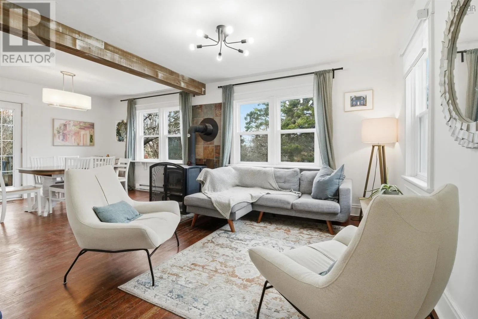 Welcome to this charming ocean blue home in the well known community of Seabright, Nova Scotia, full of character and thoughtfully updated since the current owners took possession. From the moment you walk in, youre greeted by a bright, open living and dining space surrounded by windows, with a cozy wood stove perfect for cooler evenings. The main floor also