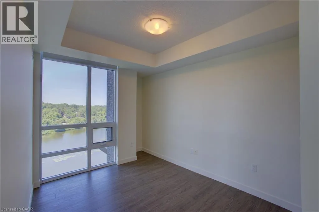 Condo living with the BEST VIEW! At its finest this pristine corner unit in the heart of historic Downtown Galt, offering uninterrupted views of the scenic Grand River. Rarely offered, this suite includes another 140 sq.ft. of private outdoor DOUBLE LENGTH balcony space—ideal for enjoying both sunrises and sunsets over the water and downtown skyline. The open-concept layout allows natural