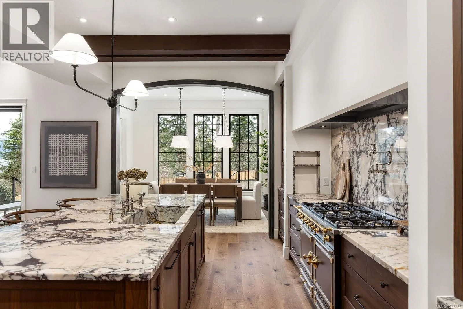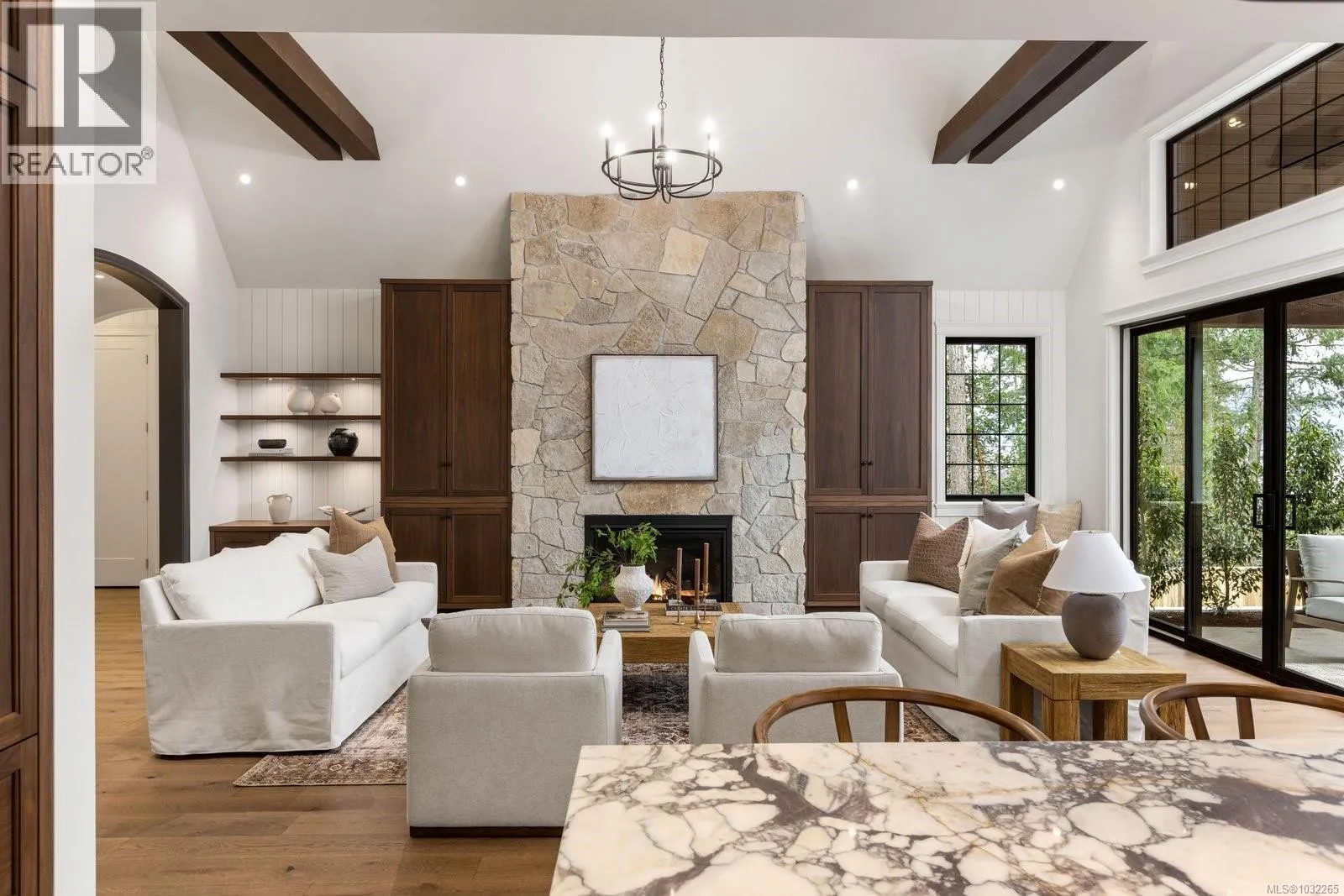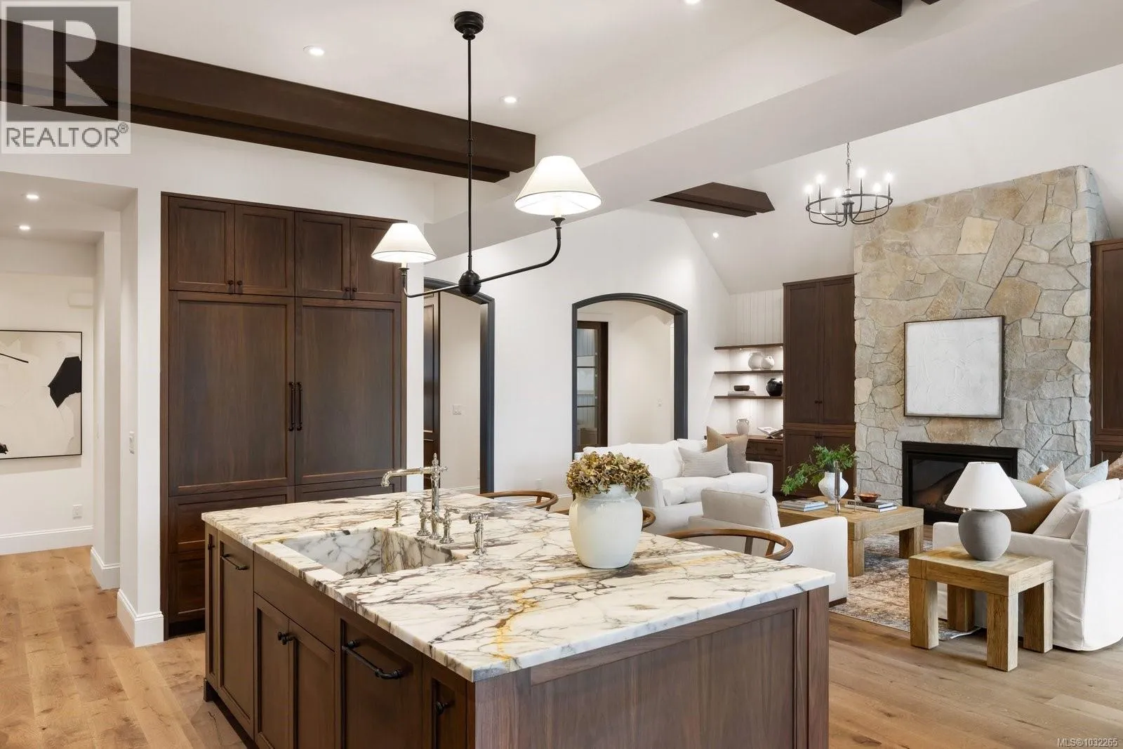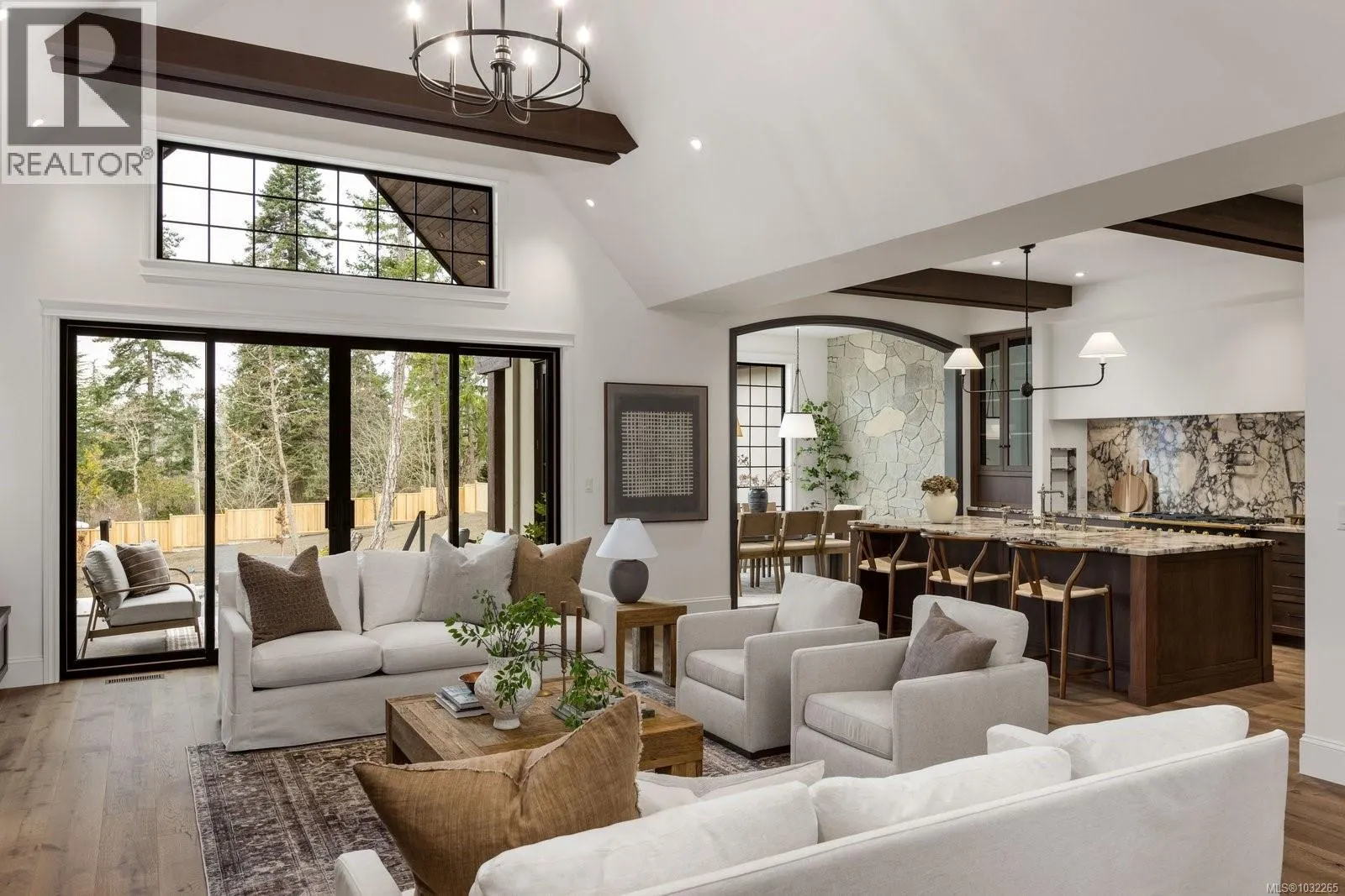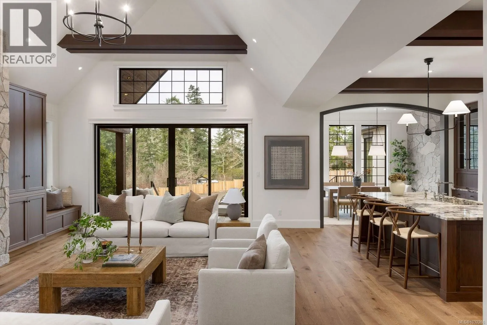 Open Sat & Sun 1-3pm. Set on a beautifully landscaped ½ acre corner lot with sweeping ocean views, this exceptional 2,850 sq. ft. residence offers refined single-level living with uncompromising attention to detail. The heart of the home is the stunning 20’ x 24’ great room, where soaring 17-foot ceilings create a dramatic yet welcoming space. Engineered hardwood floors flow