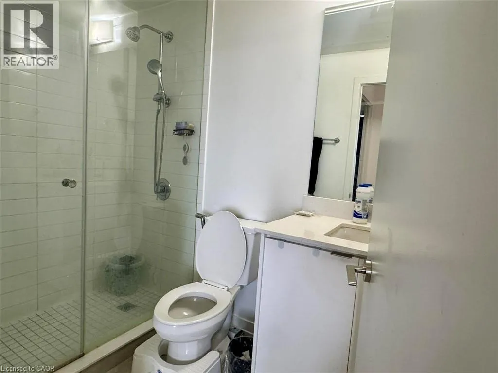 Welcome to one of downtown Kitchener’s most thoughtfully designed 1-bedroom condos. Offering 681 sq. ft. of bright, well-planned living space, this unit features large windows that fill the home with natural light and frame impressive city views. The kitchen is both stylish and functional, with quartz countertops and generous cabinetry that flow seamlessly into the open living and dining area