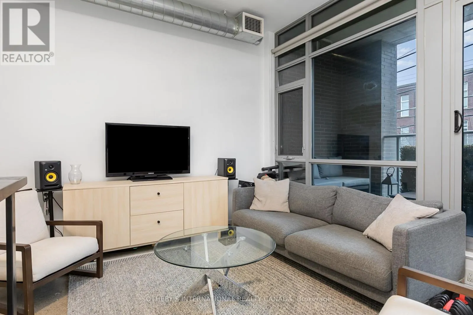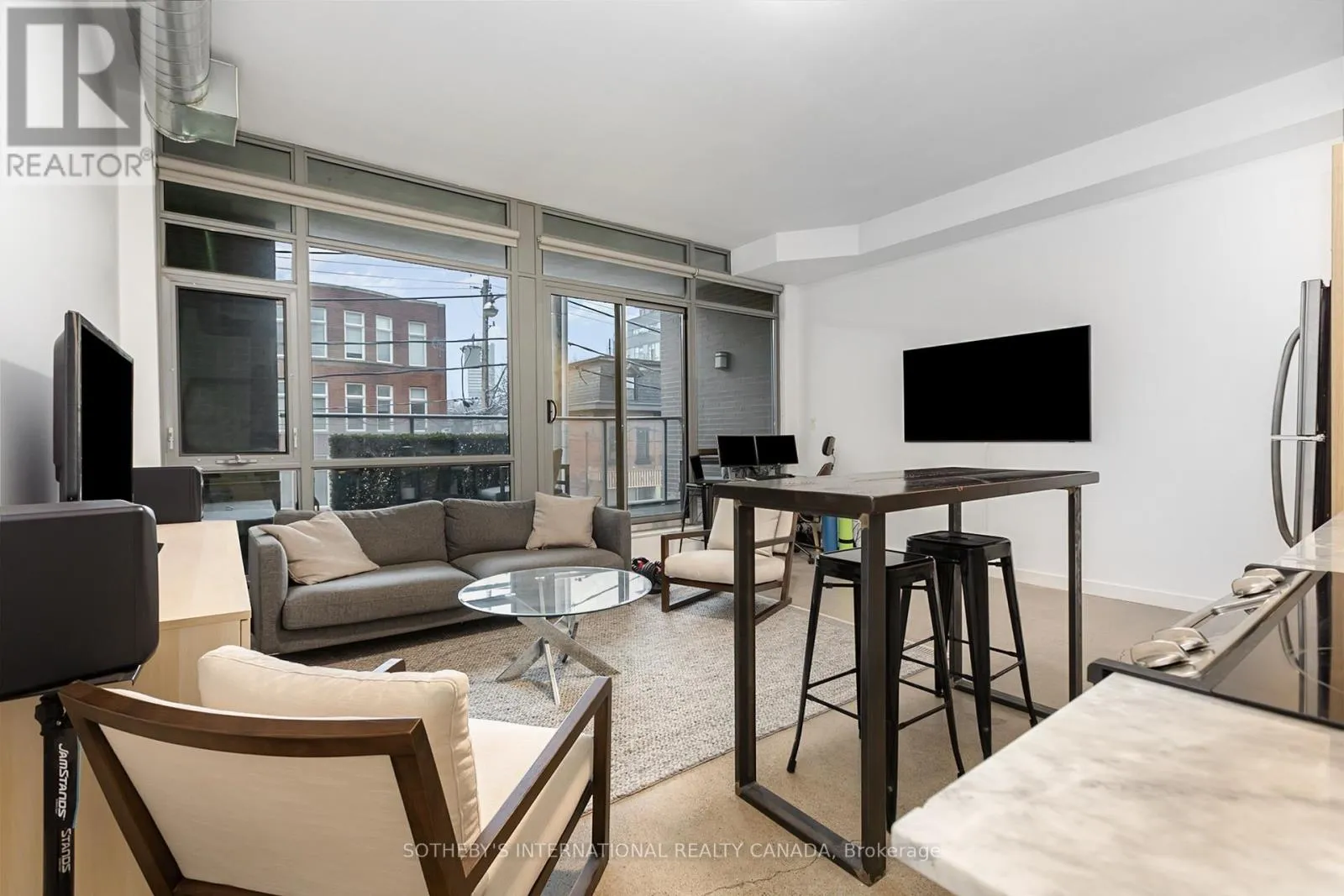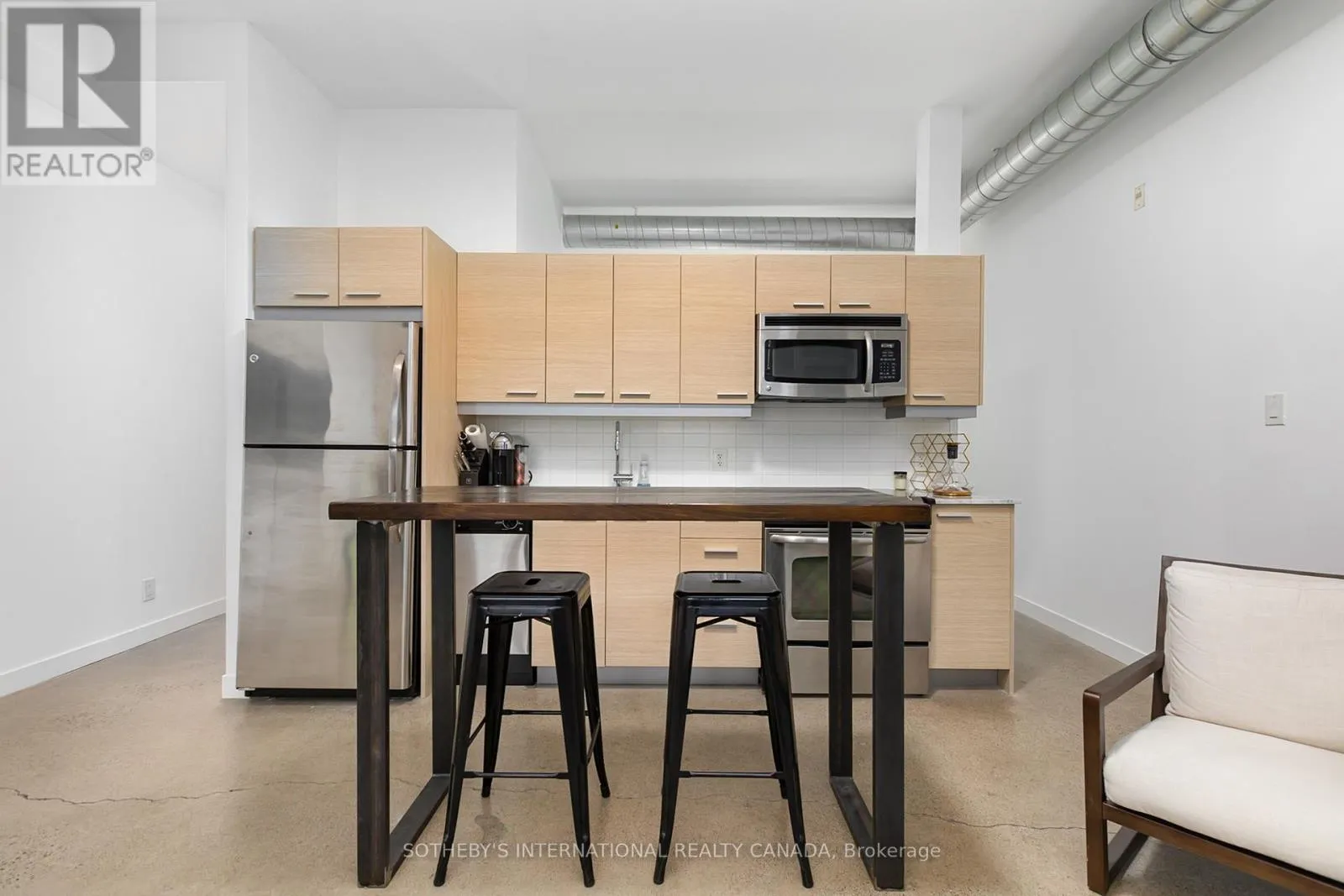 Discover this bright and beautifully appointed one-bedroom condo in Toronto’s vibrant Corktown community. Tucked within an intimate six-storey boutique residence at King & Sumach, this spacious suite offers approximately 631 sq. ft. of interior living space, complemented by an oversized 107 sq. ft. private terrace, perfect for relaxing or entertaining outdoors. Inside, rare 10-foot ceilings, exposed ductwork, polished concrete floors,