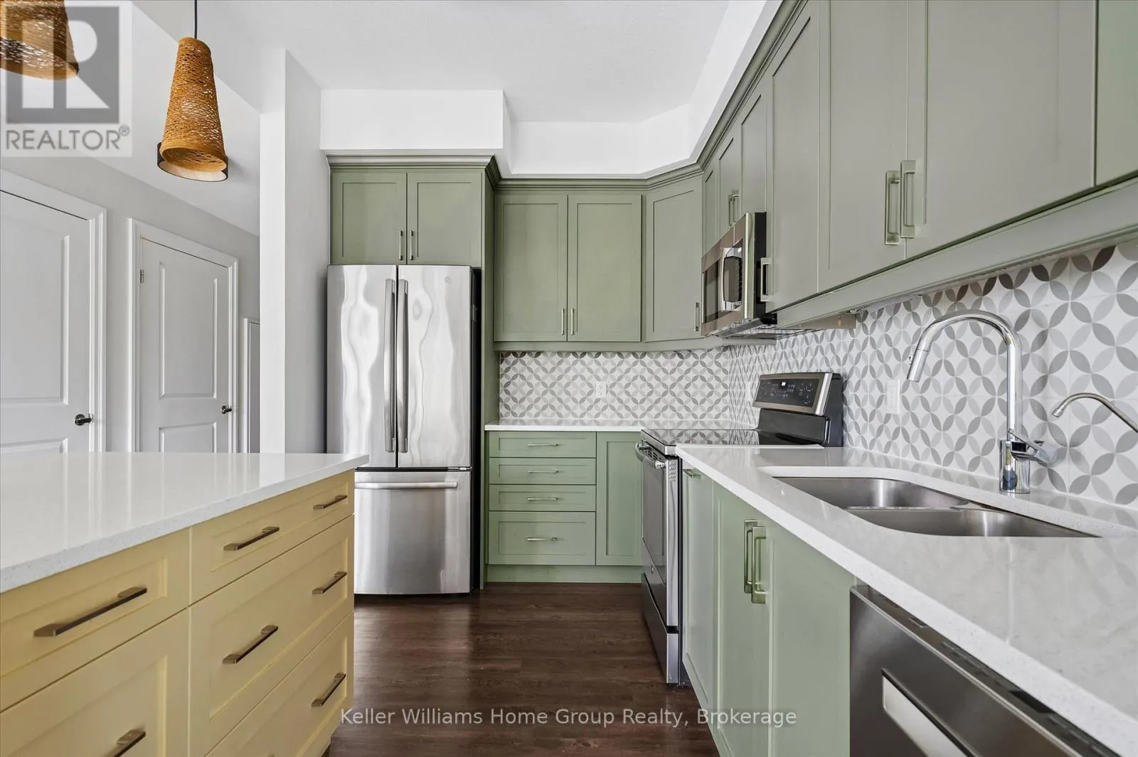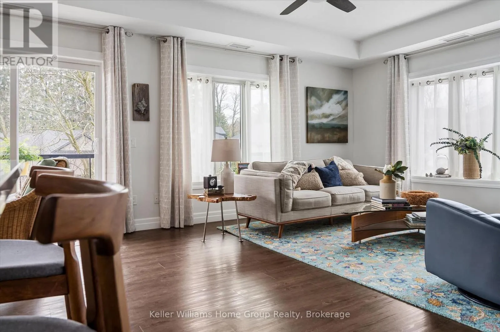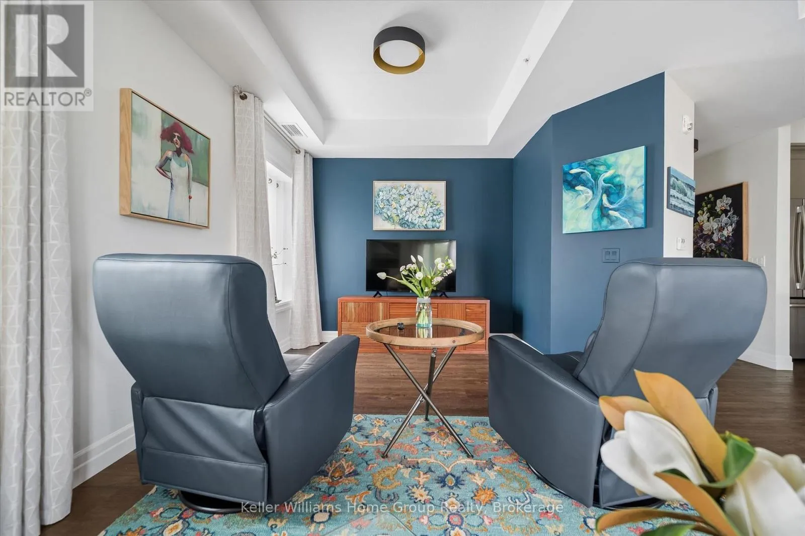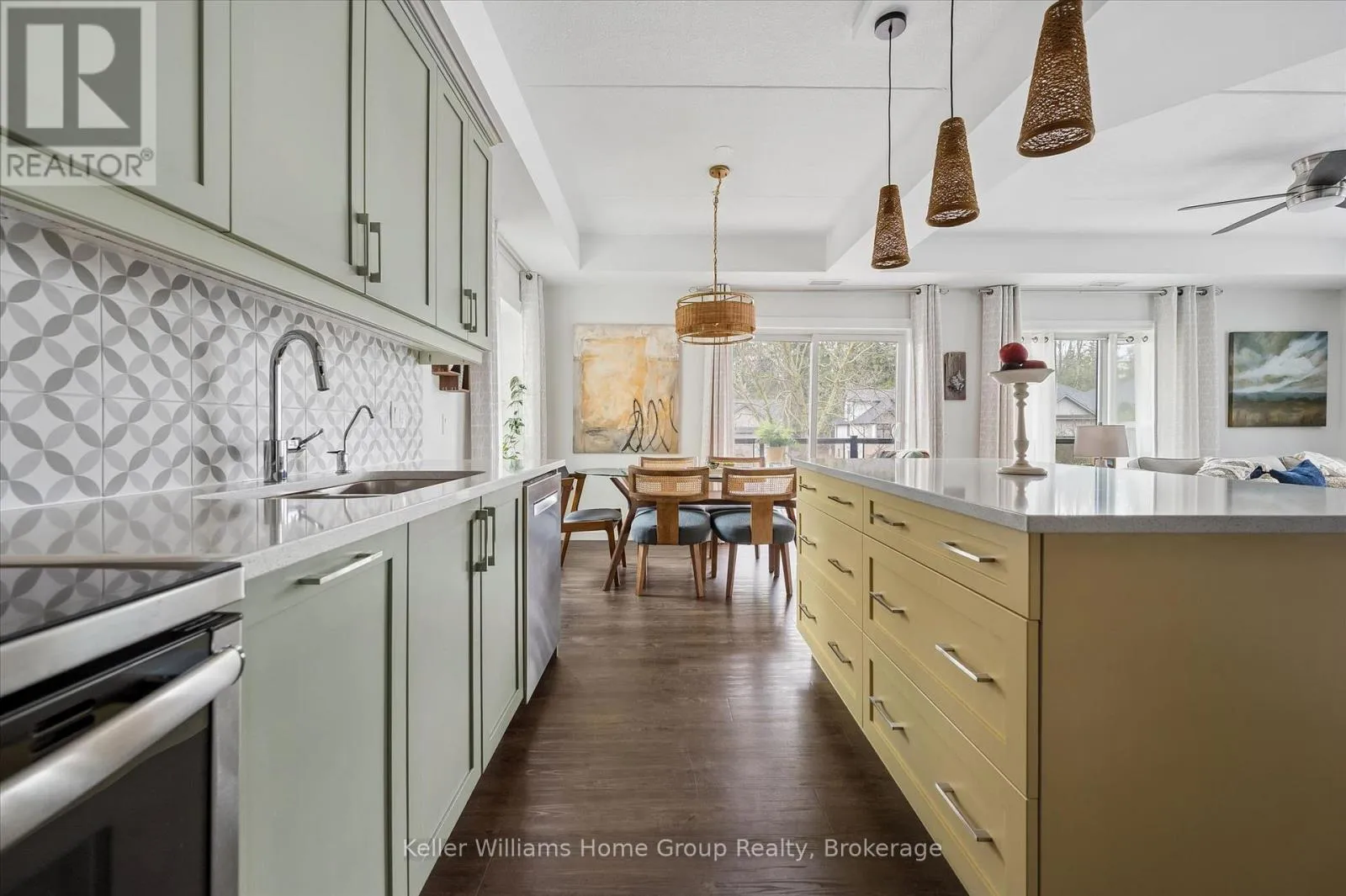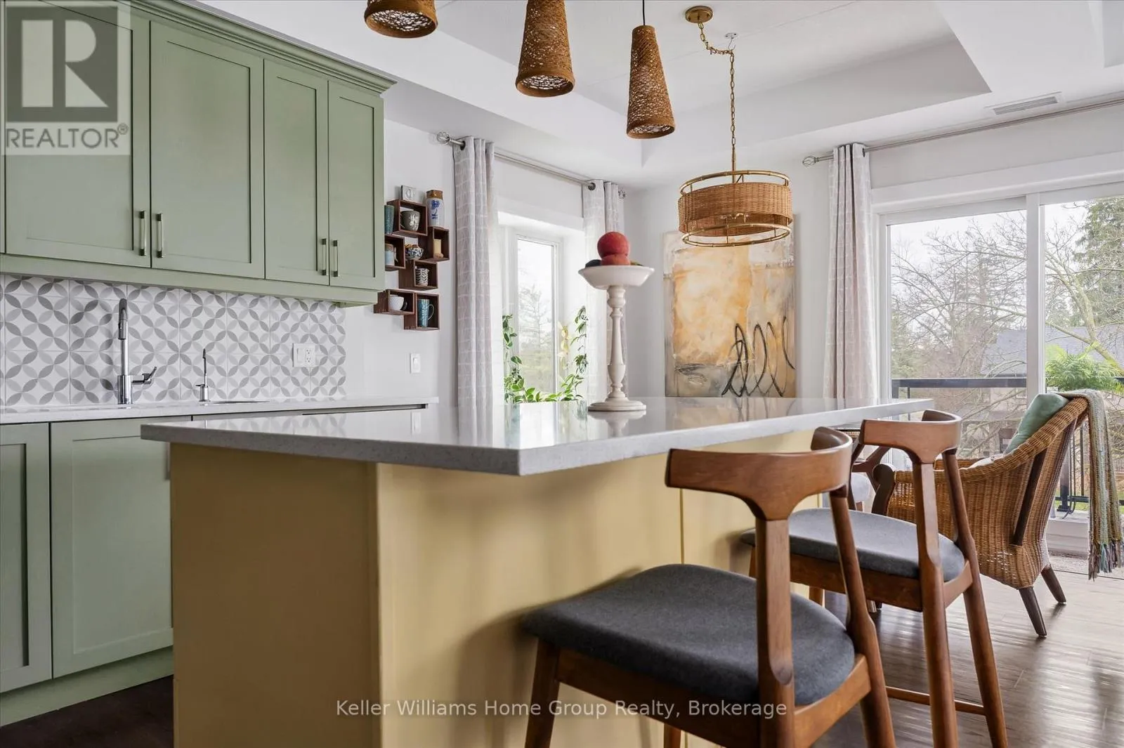Welcome to this stunning, light filled end unit condo offering 1200+ square feet of beautifully designed living space. With windows on three sides and a smart, open layout, the suite delivers an airy, modern feel wrapped in timeless, high quality finishes. The sleek kitchen anchors the main living areas and features an induction stove, reverse osmosis water filtration system,