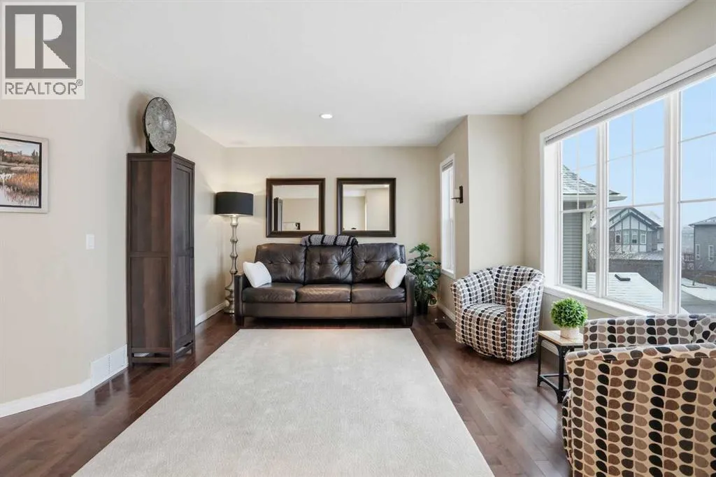 Moving through the foyer, the expansive main floor opens into a versatile flex area—currently a grand dining space, but easily adaptable into a home office or kids’ play area. At the heart of the home is the spectacular gourmet kitchen, a true showstopper featuring double wall ovens, a gas cooktop, granite countertops, and a walkthrough pantry with a newly added custom spice rack. The adjacent living room is the perfect place for entertaining or cozying up, anchored by a newer floor-to-ceiling stone surround on the gas fireplace. The sunny breakfast nook provides plenty of room for an additional table and features large sliding doors that open to your oversized yard. Step outside to enjoy the lush backyard oasis complete with a concrete patio, vibrant flower beds, a firepit area, multiple sheds, and still plenty of room for a play structure and kids to run around. Back inside, the main floor is completed by a highly functional custom mudroom with built-in storage and a sink, plus a convenient 2-piece bathroom. Upstairs, they’ve updated the entire flooring with newer hardwood and carpet throughout. Even with the vaulted ceiling from the foyer, there’s still a great-sized bonus room and 3 generously sized bedrooms. The primary suite is a true retreat, easily accommodating a king bed and all your bedroom furniture, featuring a luxurious 5-piece ensuite and a walkthrough closet that connects to the attached laundry room, allowing you to easily do your laundry and simply close the access door when you’re done. A well-appointed 4-piece bathroom completes the upper level. Down in the fully fin ished basement, you will find the extra bedroom, a 4-piece bathroom, a craft room, and a dry bar area. It also features an incredible hockey-designed rec room with a stadium backdrop on the wall and the perfect setup for hanging your Flames jerseys. The sellers have meticulously updated this home, adding new shingles, siding, eavestroughs, fascia, a new garage door, Gemstone exterior lighting, a new hot water tank, a new water restrictor valve, fresh paint and new light fixtures throughout. Located in the vibrant community of Sage Hill, you are minutes from local amenities, offering an exceptional lifestyle and quick access for a seamless commute. Upgraded and move-in read, this truly isn’t one you’ll want to miss! (id:62650)