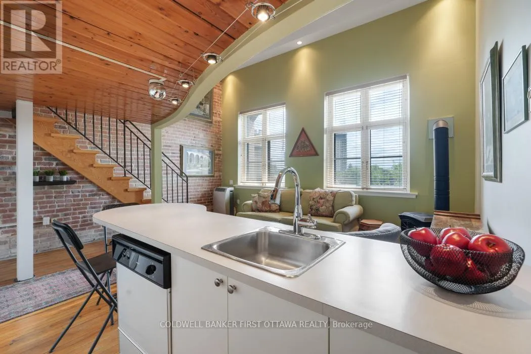 Step into this stunning one bedroom loft in Ottawa’s iconic Wallis House, where heritage charm meets modern urban living. Soaring 14-foot ceilings and massive south facing windows flood the space with natural light, highlighting the dramatic exposed brick wall and open-concept layout. The kitchen flows seamlessly into the living space, perfect for entertaining or enjoying cozy evenings by the gas