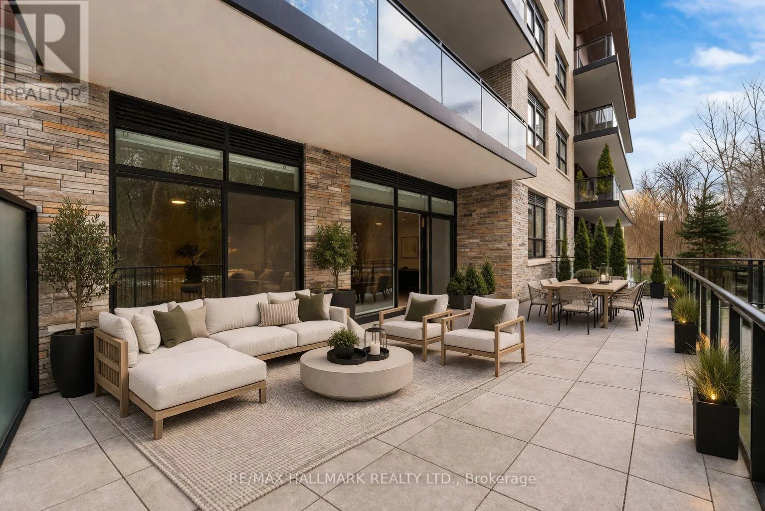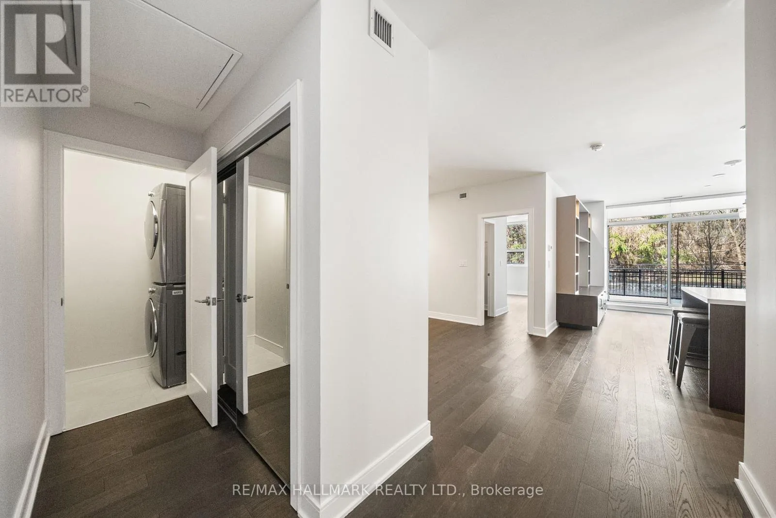 Love Where You Live! Located in the highly sought-after Craftsman Condos in vibrant Clarkson Village, this luxurious ground-floor suite offers over 1,200 sq ft of upgraded living space, complemented by an impressive 466 sqft private terrace overlooking serene Birchwood Park. Thoughtfully designed with timeless finishes, this home features engineered hardwood flooring, remote-control roller shades on all windows, and pot lights