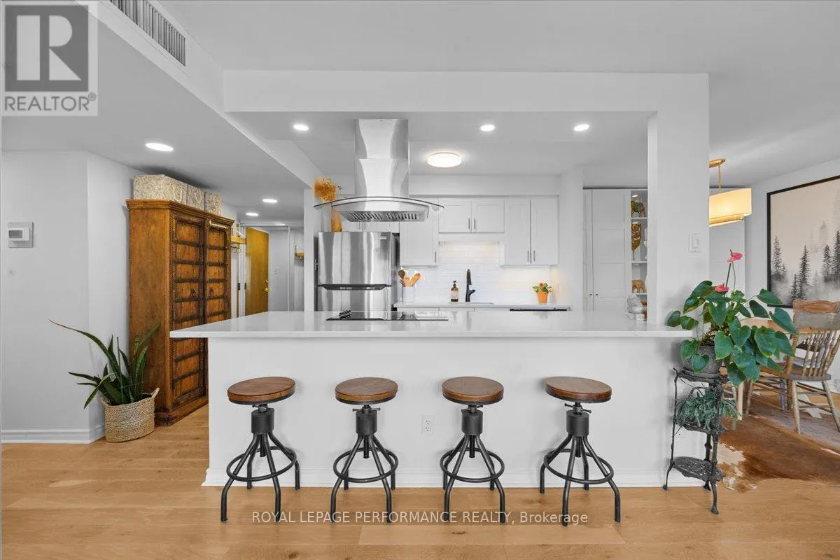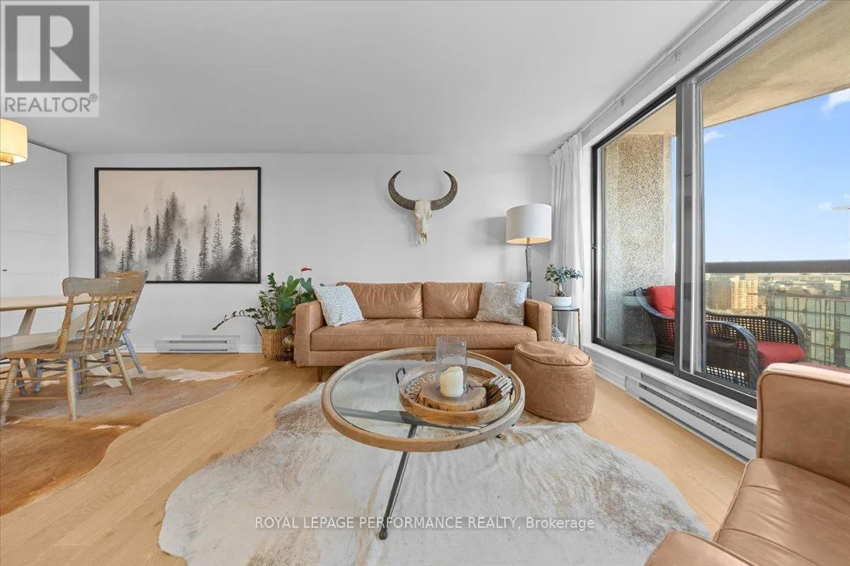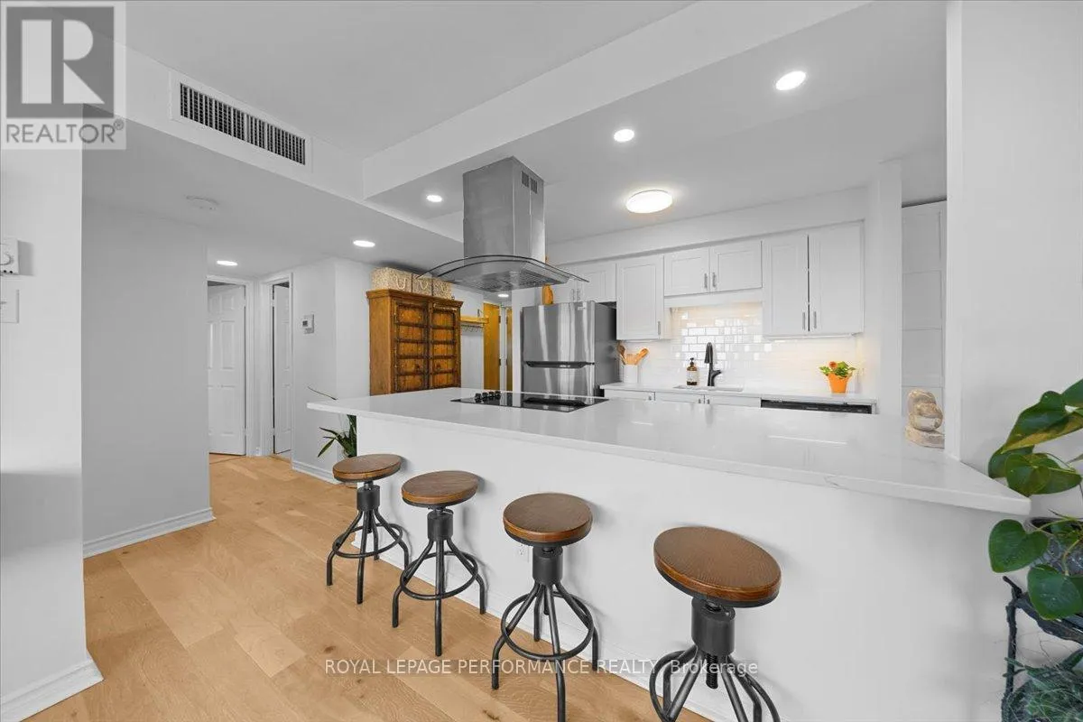 Experience elevated urban living on the 19th floor of this sun-drenched, south-facing sanctuary. This beautiful 2-bedroom, 2-bathroom apartment features a thoughtful split-bedroom layout, offering a spacious primary suite with a private ensuite bath and a second bedroom positioned directly across from the main bathroom. The heart of the home is an open-concept living space centered around a welcoming white kitchen,