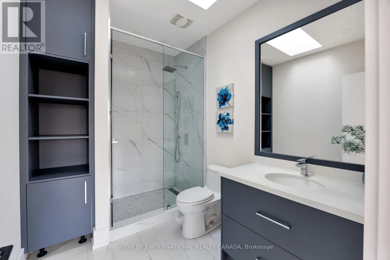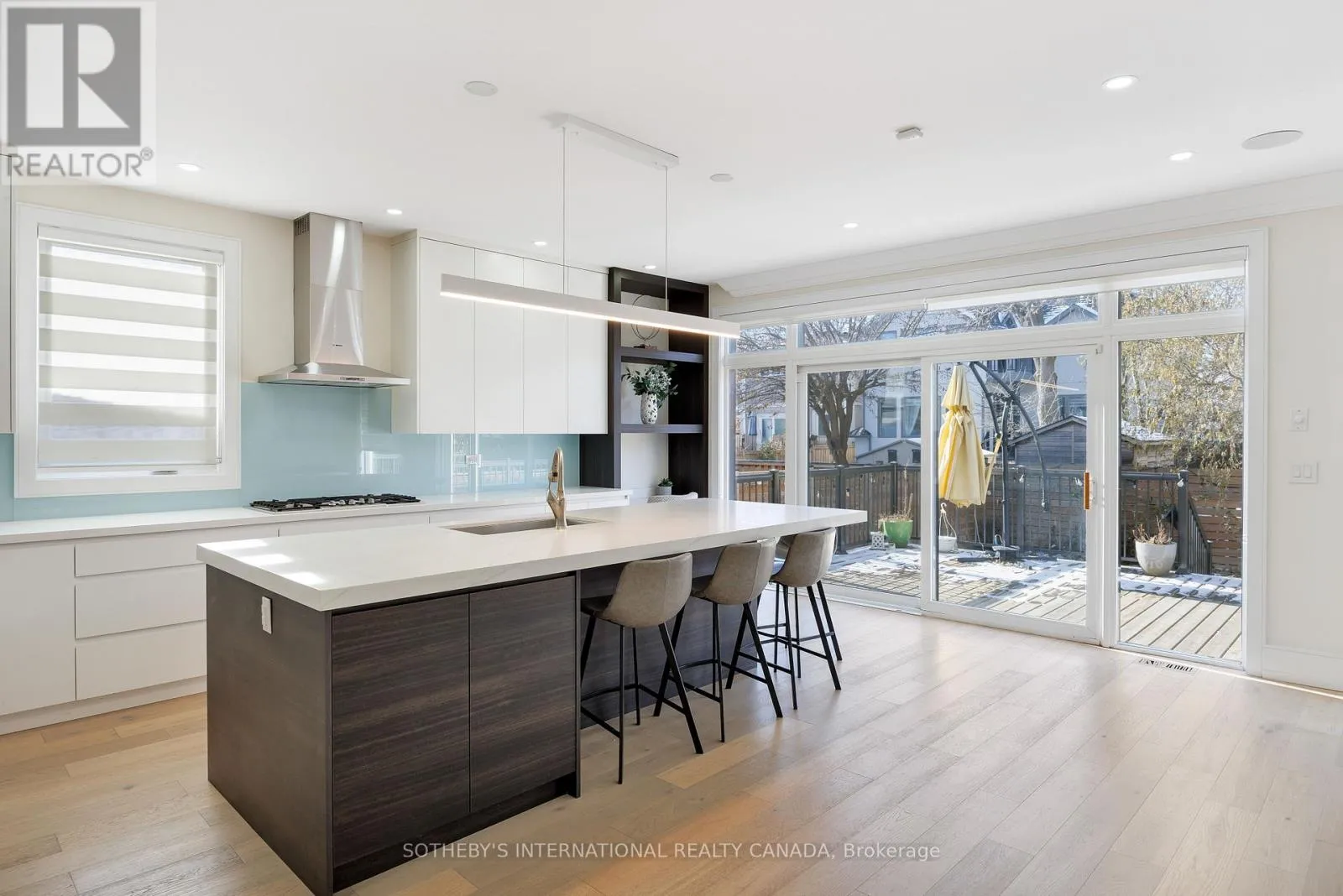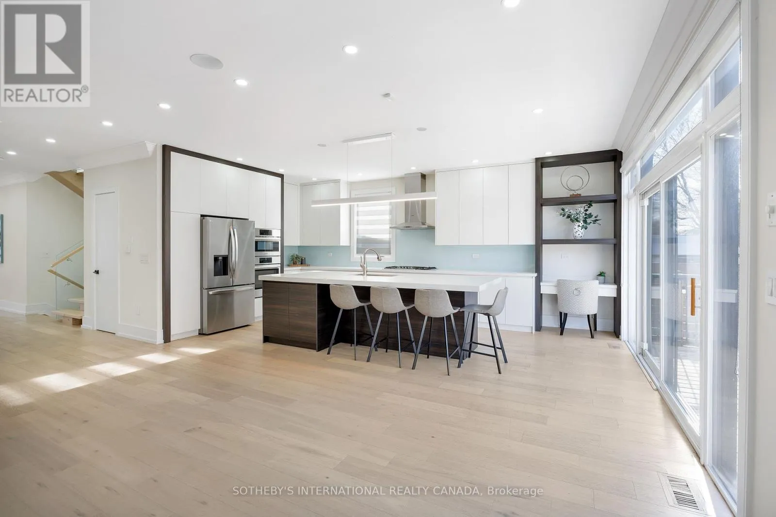 Modern executive residence in the heart of South Etobicoke, offering contemporary design and exceptional convenience. This four-bedroom, five-bathroom home combines luxury and practicality with easy access to highways, the airport, shopping, and downtown Toronto.The custom chef’s kitchen is a highlight, featuring Bosch stainless steel appliances, a spacious centre island, and sleek finishes ideal for both everyday living and entertaining. The