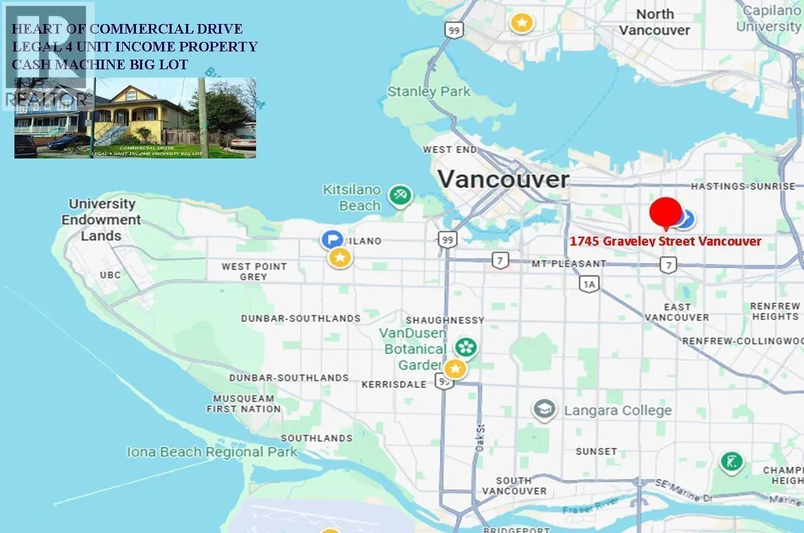 Commercial Drive Big Legal 4 Suite Cash Machine, 49.5´x100´ RT-5 Lot ½ block to “The Drive”. 3 Lvl 2931 SF House Very Good condition with updated elec, roof, drains, sewer line, H/W tank, high efficiency furnace, LED lighting, Plumbing, smoke & CO detectors, carpets & flooring. Kitchens, Baths appliances upgraded/replaced since 2008. Contains Main/Top 2 Lvl, 3 Bdrm, 2 Bath