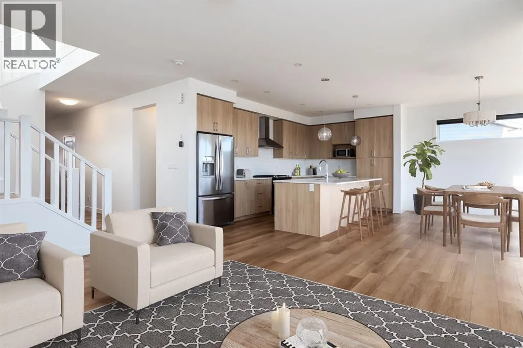 Welcome to Wildflower in Airdrie — a community where wide-open skies, peaceful streets, and beautifully planned homes create an ideal setting for everyday life. Situated on a spacious pie-shaped lot, this modern farmhouse offers the room and versatility to grow alongside your family.Step inside to a bright and welcoming foyer that feels both open and functional, with plenty of space