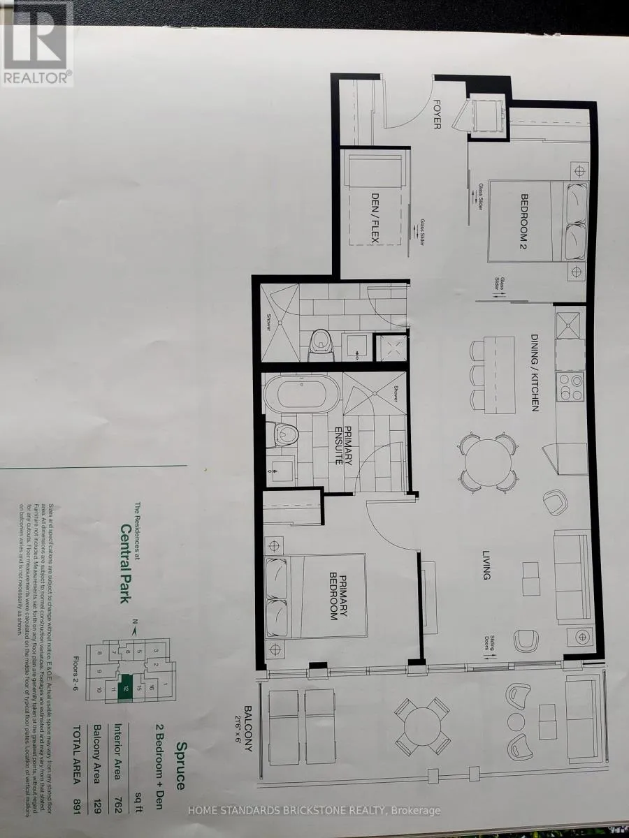 ** One of the Best Floor Plan in Brand New Central Park Condo ** No Wasted Space Floor Plan ** 762 SqFt + 129 SqFt Balcony ** Natural Light from South Exposure, Future Court Yard View ** Storage Locker (Oversized 5′ x 7′) is a Great Value