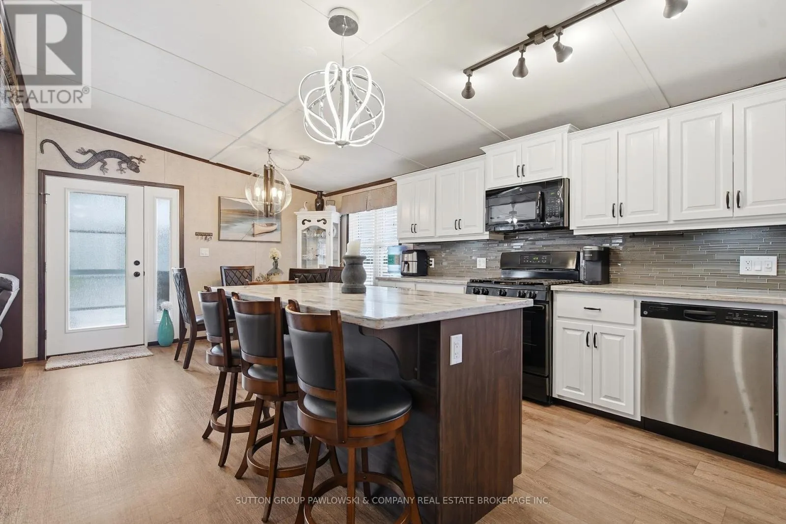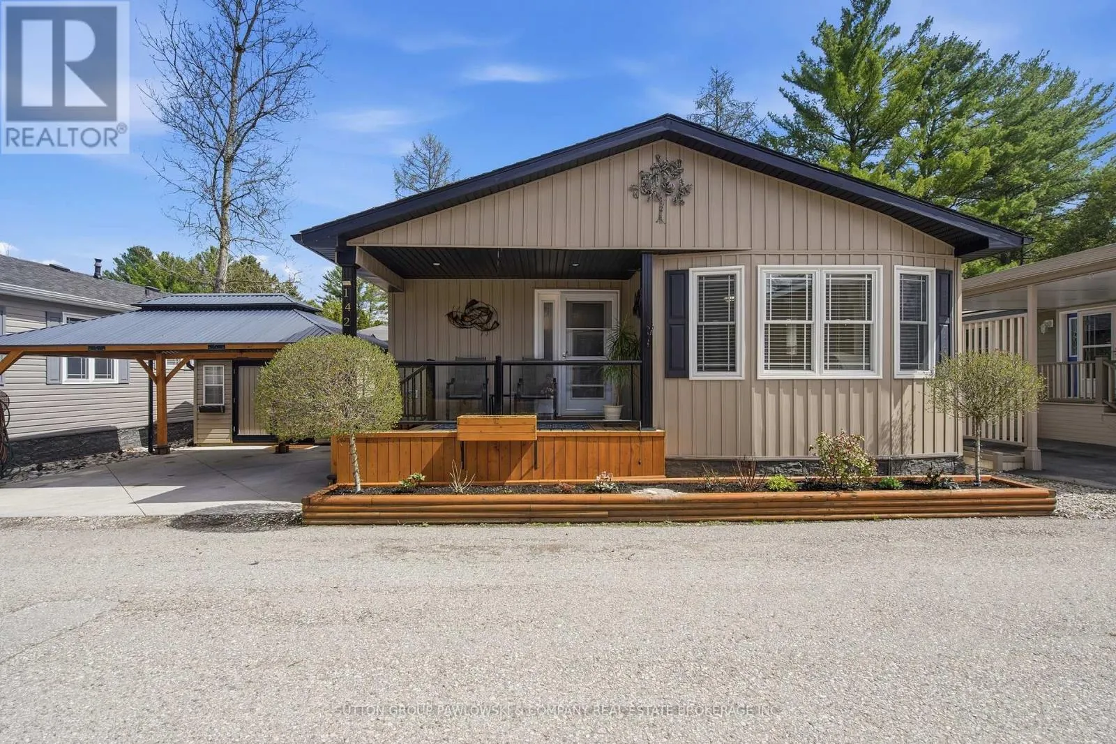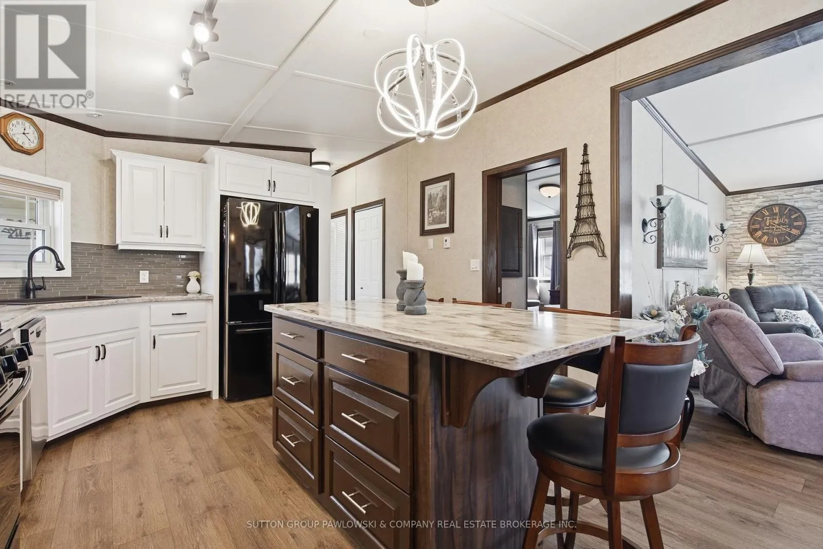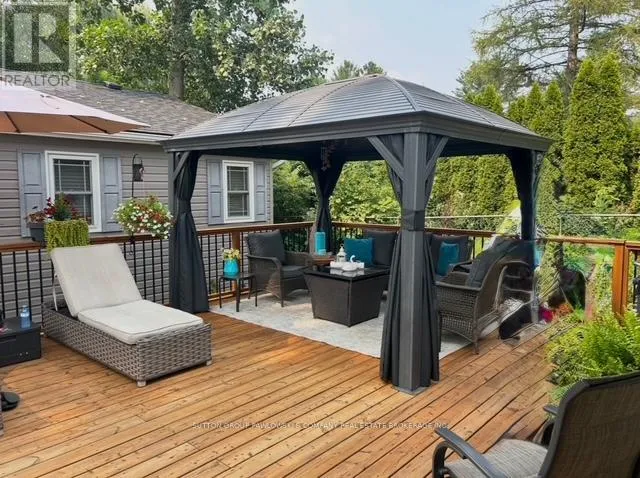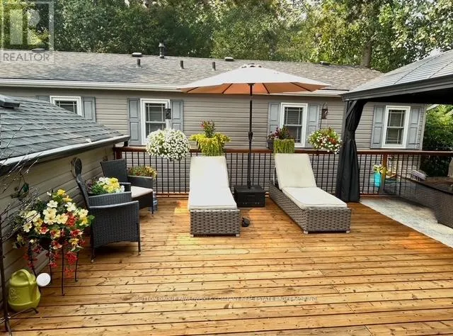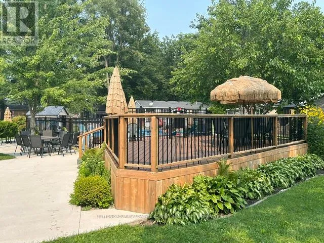Welcome to Oriole Park #142 in Komoka’s sought-after 55+ community… where lifestyle meets low-maintenance living. This beautifully maintained, original-owner modular home (2017) stands out with upgraded black trim, a premium location within the park, and exceptional indoor-outdoor living.Offering approximately 1,250 sq ft, this home features a bright, open-concept layout with a spacious kitchen complete with abundant cabinetry, large island, and