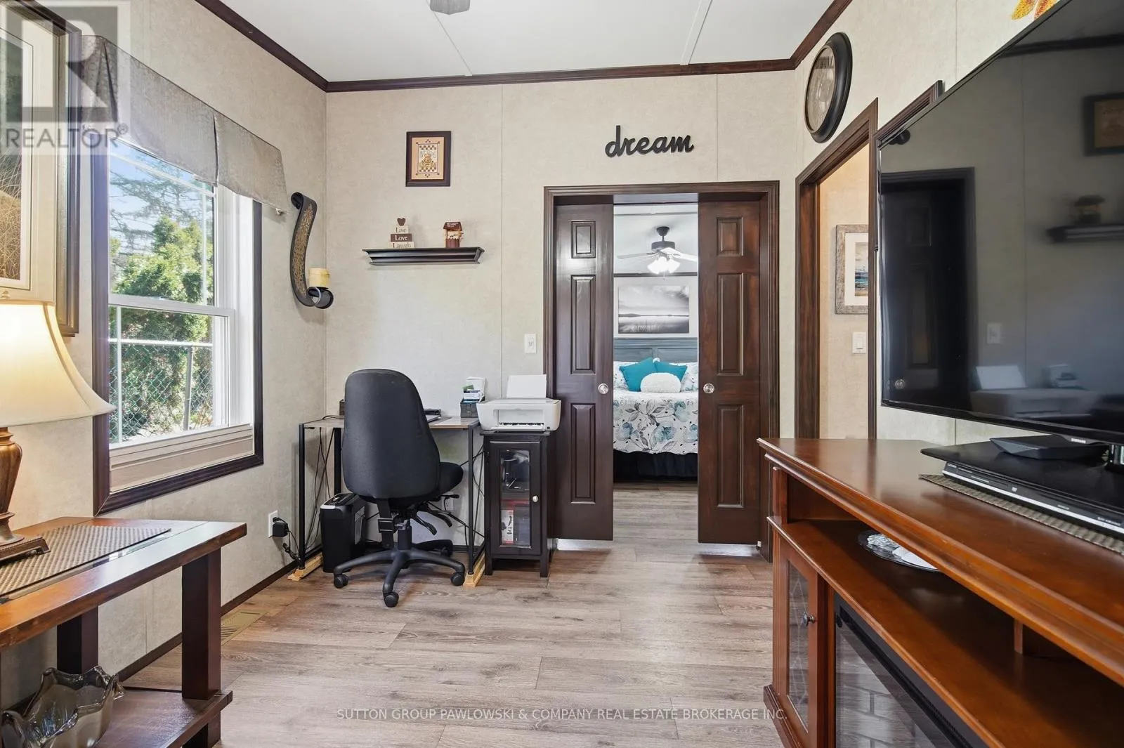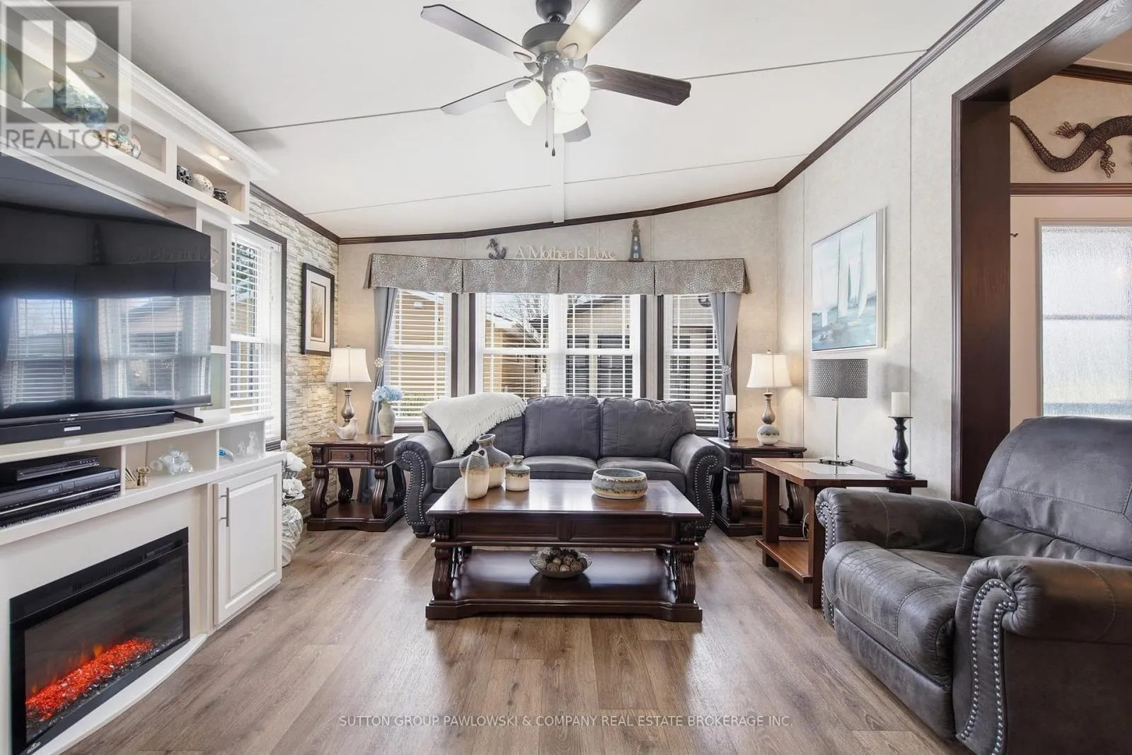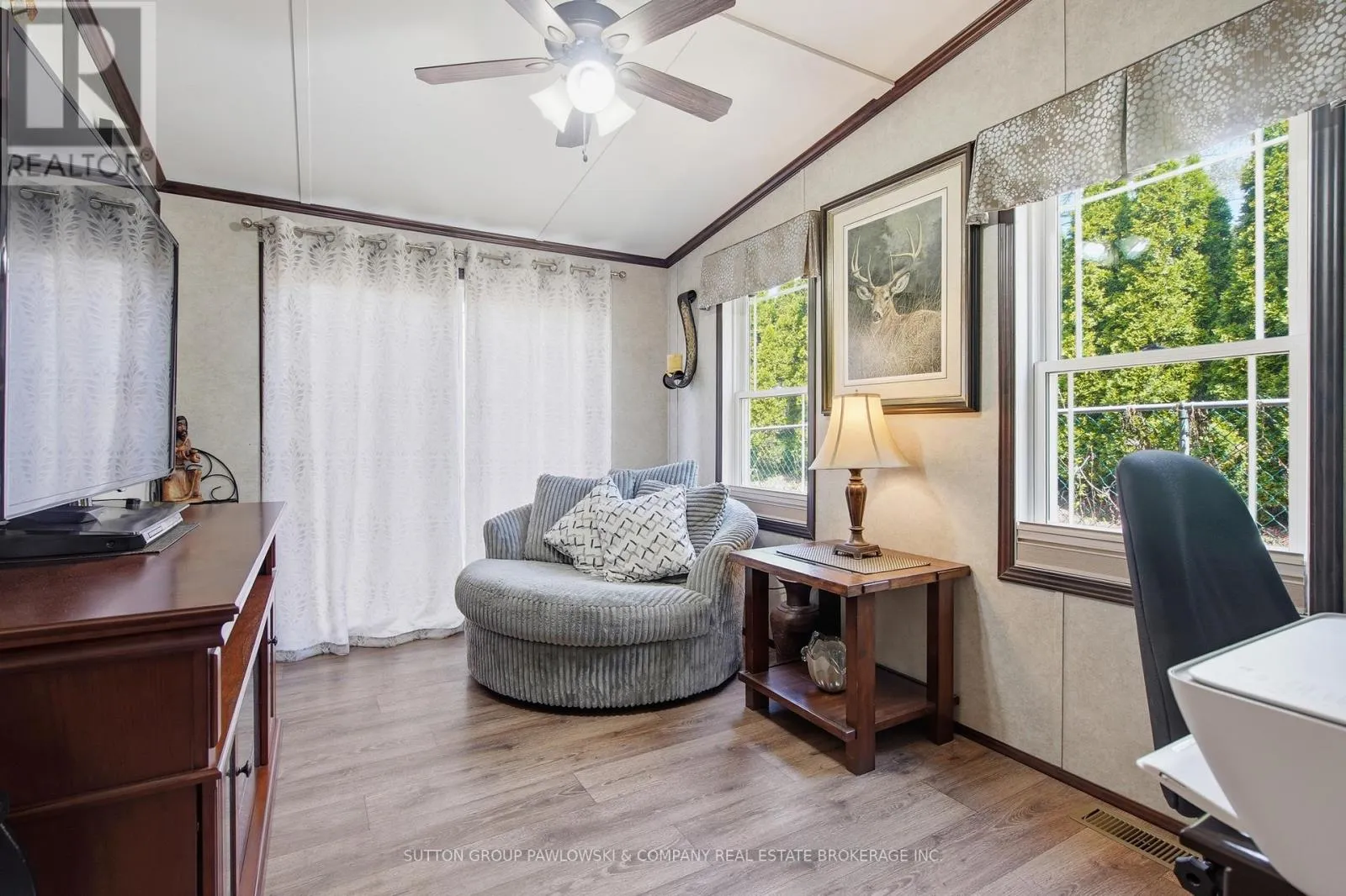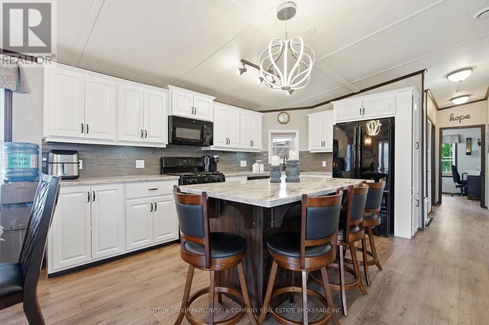 Welcome to Oriole Park #142 in Komoka’s sought-after 55+ community… where lifestyle meets low-maintenance living. This beautifully maintained, original-owner modular home (2017) stands out with upgraded black trim, a premium location within the park, and exceptional indoor-outdoor living.Offering approximately 1,250 sq ft, this home features a bright, open-concept layout with a spacious kitchen complete with abundant cabinetry, large island, and