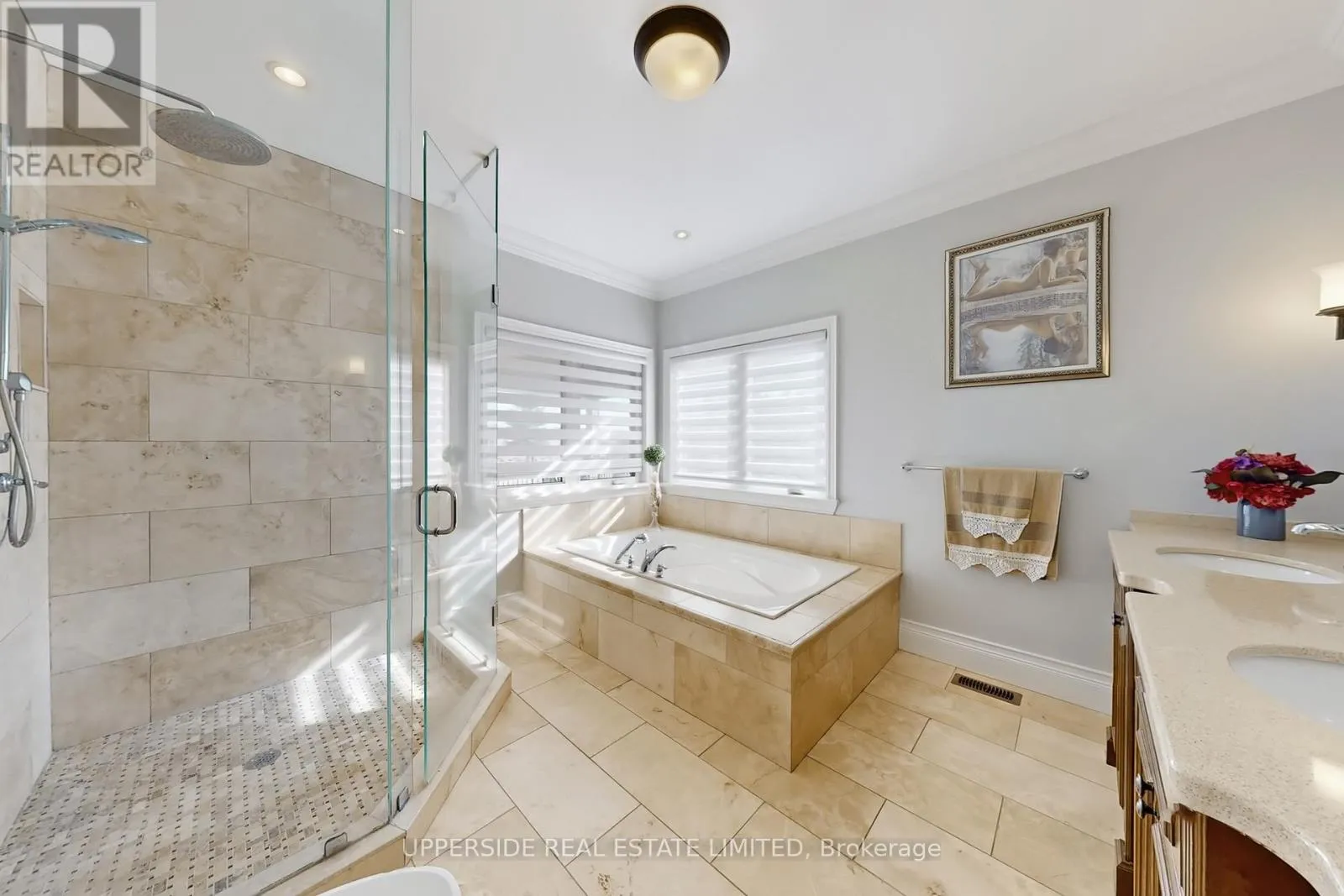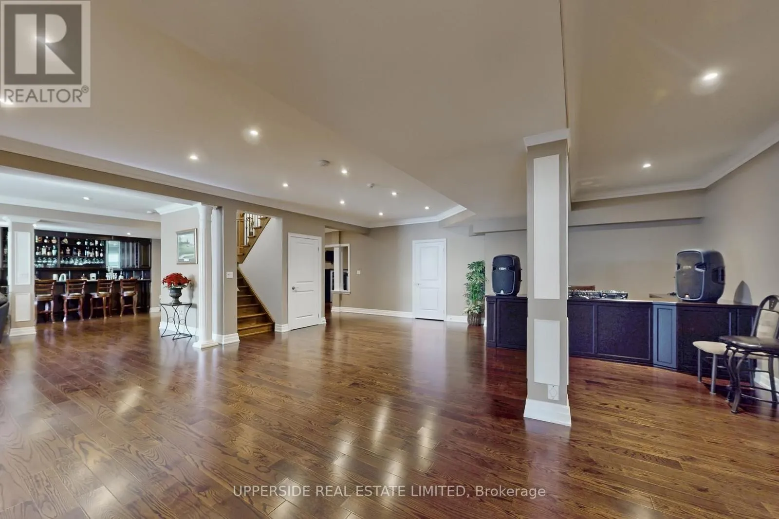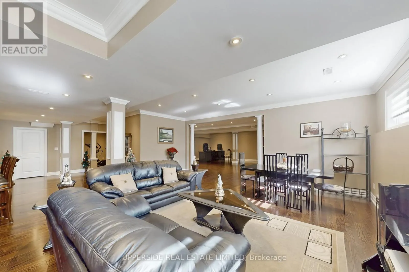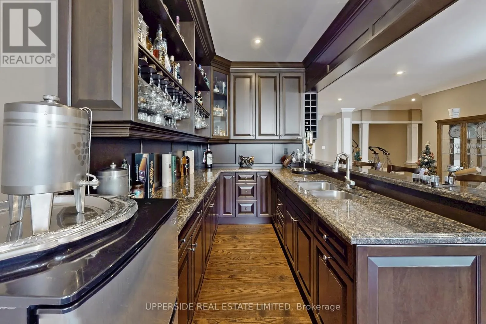 This elegant bungalow has everything today’s buyer could wish for-beautifully finished and move-in ready. Behind striking double iron gates, the full stone exterior and exquisite landscaping create an impressive first impression. Inside, coffered ceilings, rich crown moldings, and custom details flow throughout a layout designed for both family living and refined entertaining.The inviting family room with fireplace opens to a