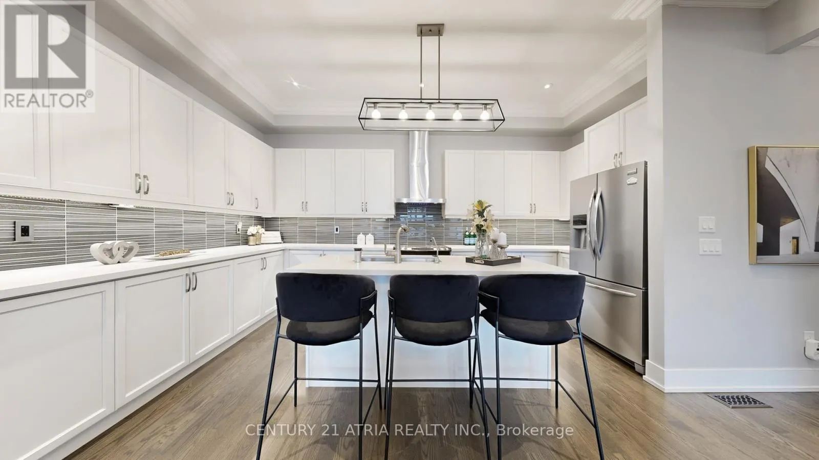 Beautifully upgraded south-facing modern townhouse in one of the hottest pockets in Vaughan. This 2 garage, 3 beds 4 baths, 3 parking space end-unit boasts 2233 SF as per builder plans. Home features a large & inviting ground floor multi-purpose room with a custom layout consisting of 4 piece bath & laundry/mud room. Wall-to-wall large windows brings in natural
