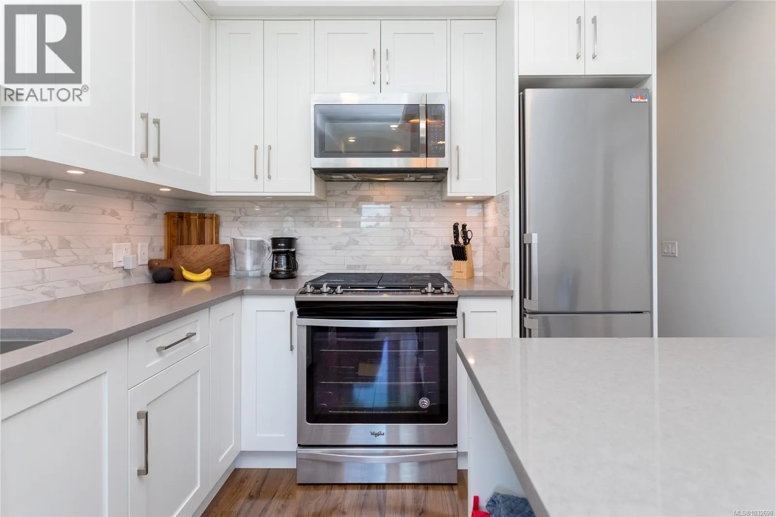 Welcome to Travino Landing! This attractive ground-floor 2-bedroom, 1-bathroom garden suite features an open-concept floor plan with 9 ft ceilings, stainless steel appliances, a gas cooktop, quartz countertops, heated tiled bathroom floor, in-suite laundry, and a walk-out patio with your very own private fenced yard. The beautifully maintained and landscaped common property is truly stunning, offering a serene, park-like setting