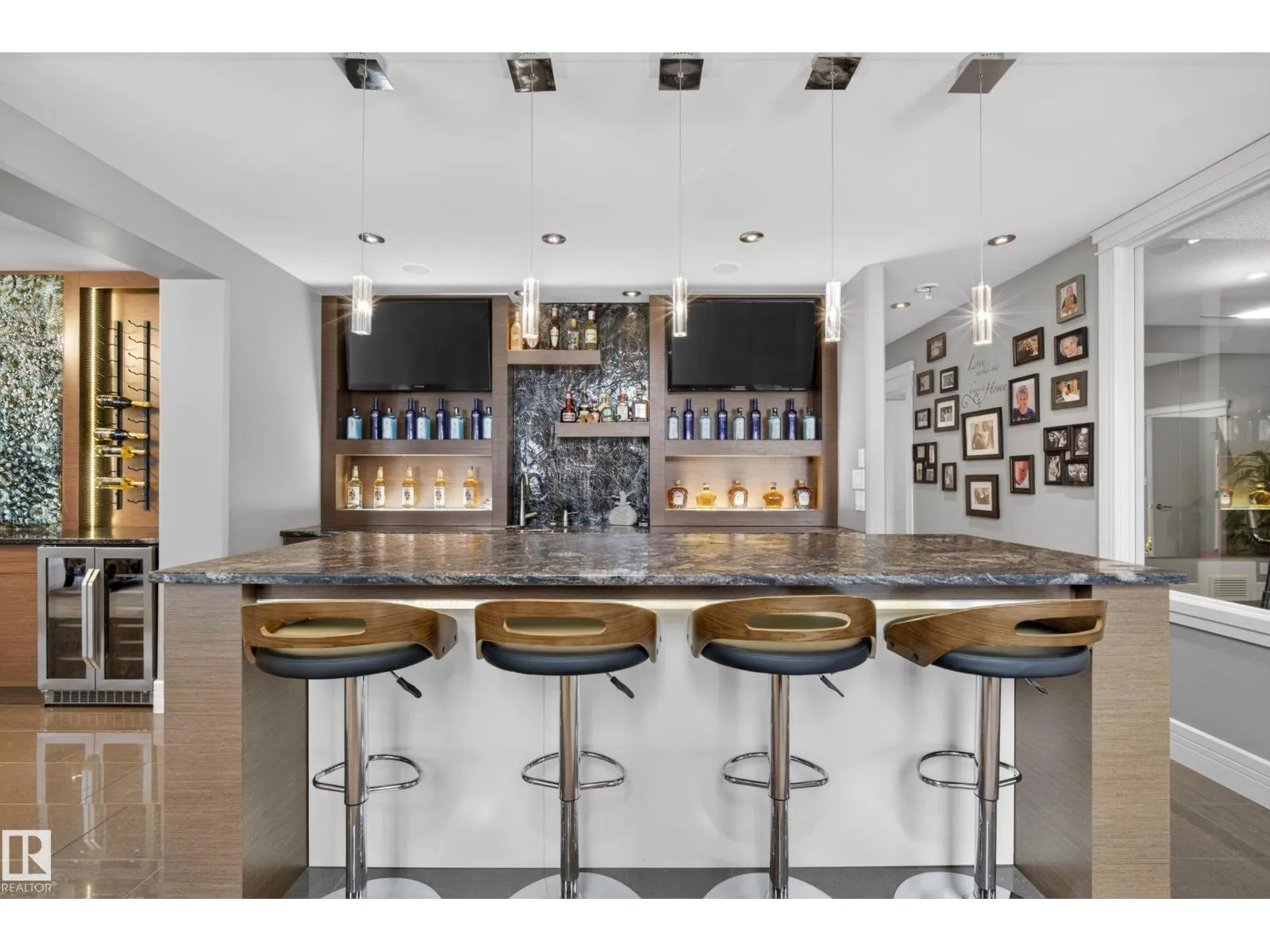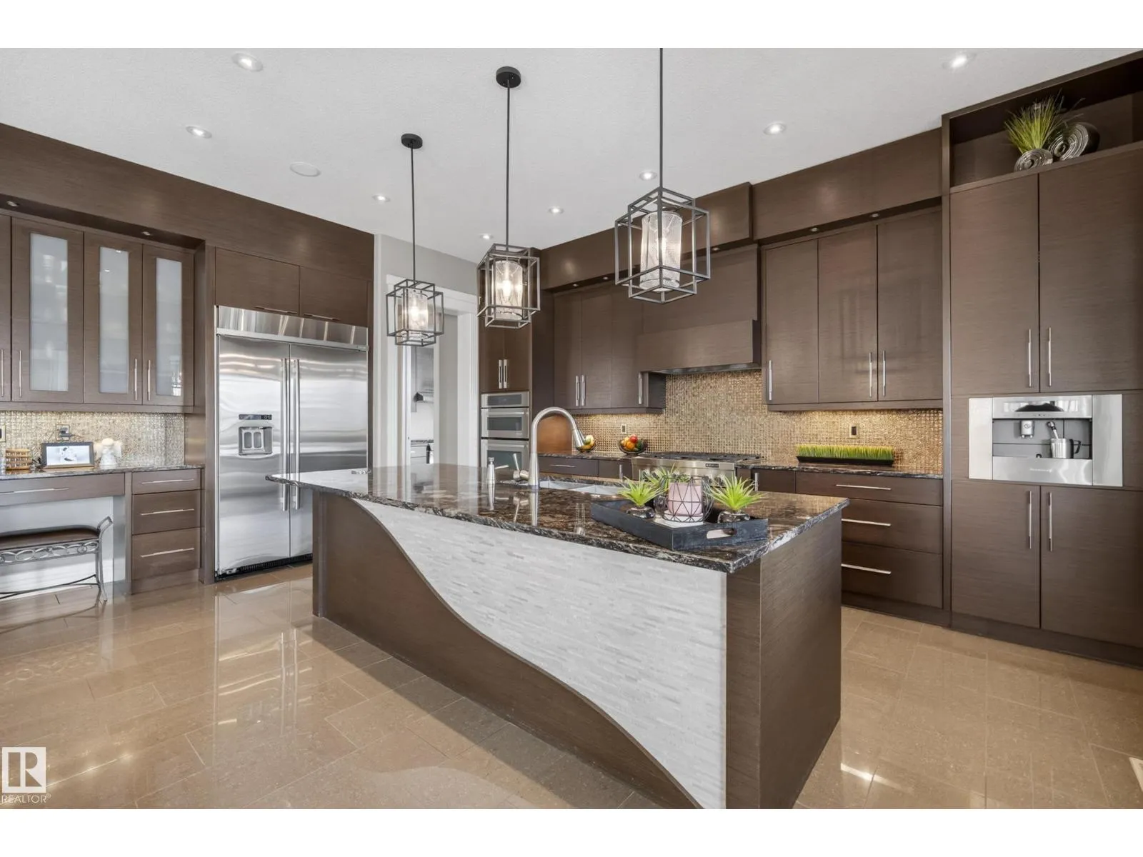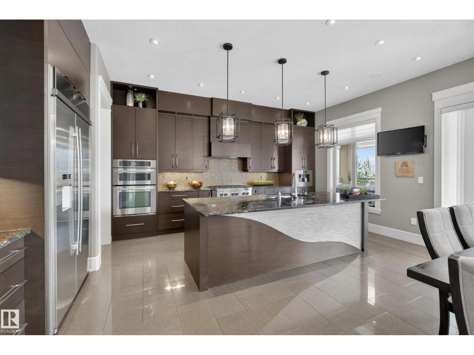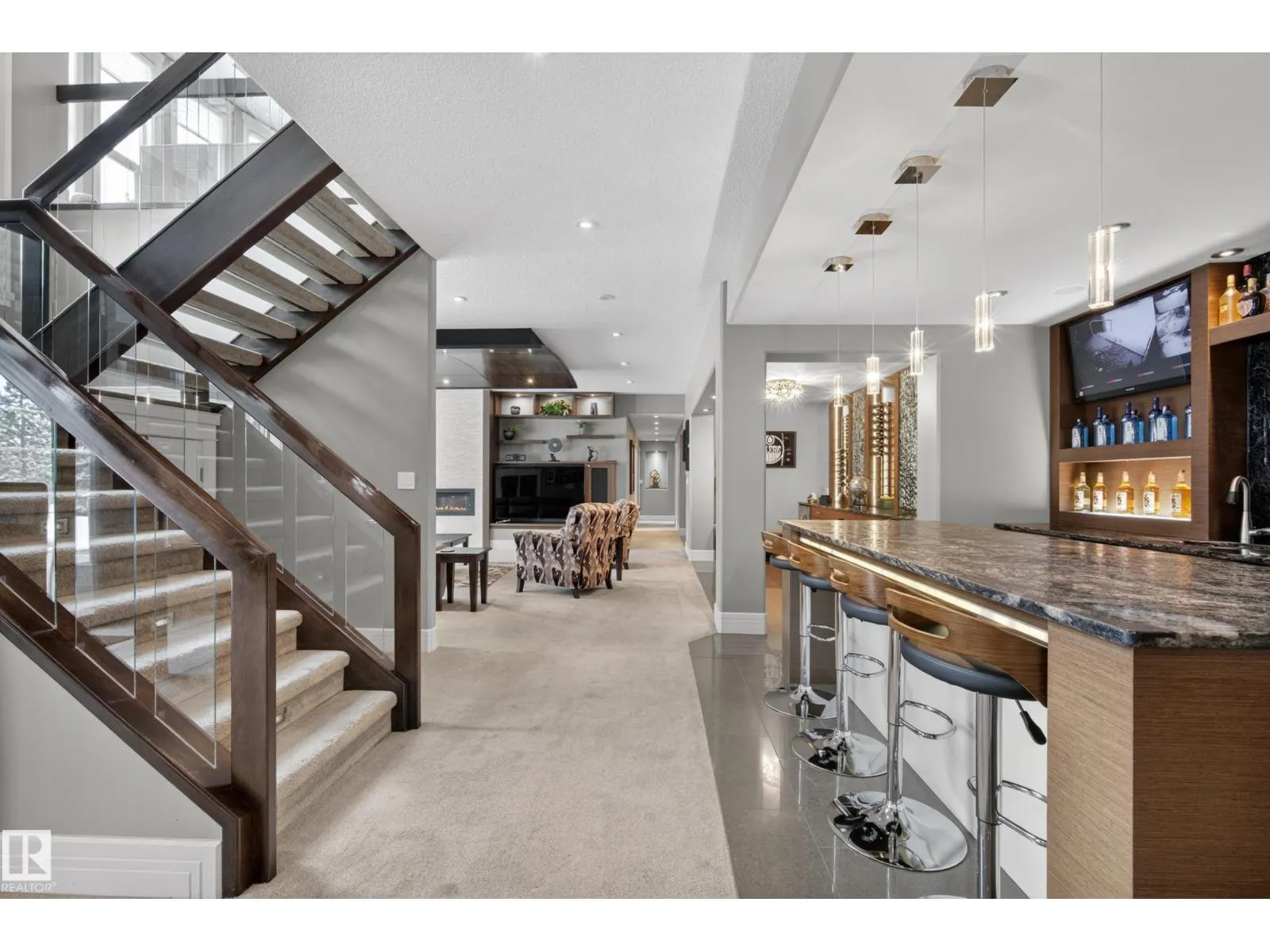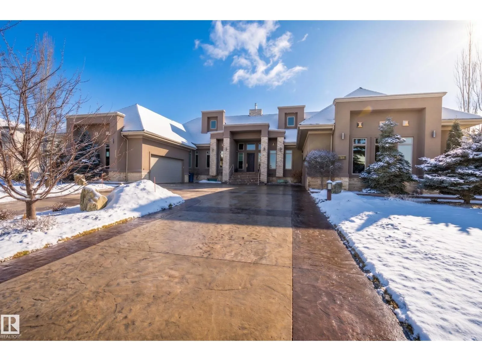 Award-winning estate by Rimrock Elevations, showcasing exceptional design, craftsmanship & timeless luxury. Set on a beautifully landscaped 0.7 acre walkout lot with stamped concrete, this residence offers 5 bedrooms & 5 bathrooms, thoughtfully designed for both everyday living & elevated entertaining. The chef-inspired gourmet kitchen is complemented by a butler’s kitchen, while elegant dining & expansive living spaces feature soaring