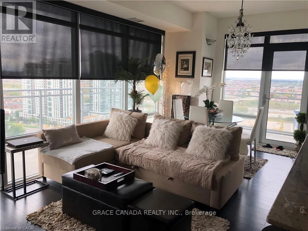 One Bedroom Plus Den(Could Be Used As 2nd Bedroom) And 2 Full Bathrooms, Very Bright Unit With Lots Of Sunlight, Hardwood Floors , 9′ Ceilings, Lots Of Upgrades, Glass floor to ceiling , Professional blinds, Quarts countertops in kitchen and bathroom vanities , One Of The Best Buildings In Mississauga With Lots Of Amenities, Big Wrap Around Balcony Almost 300