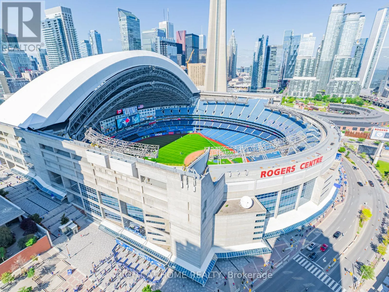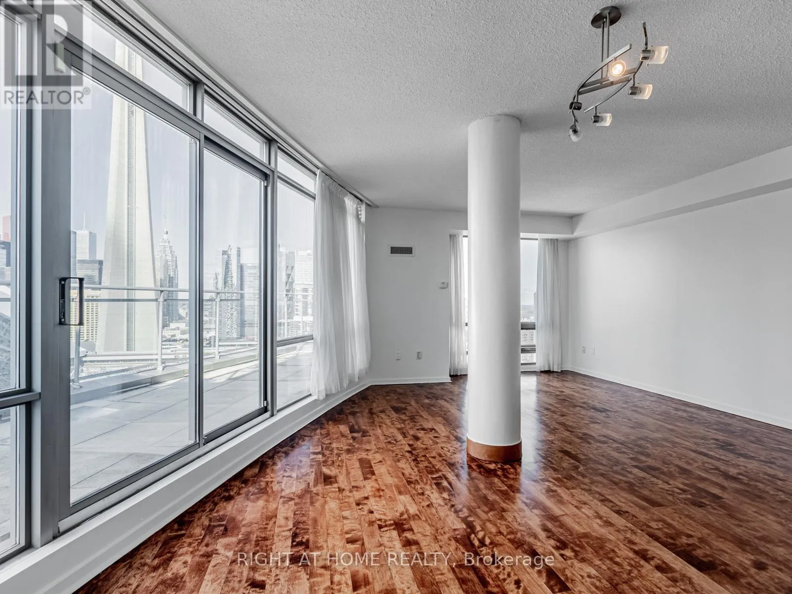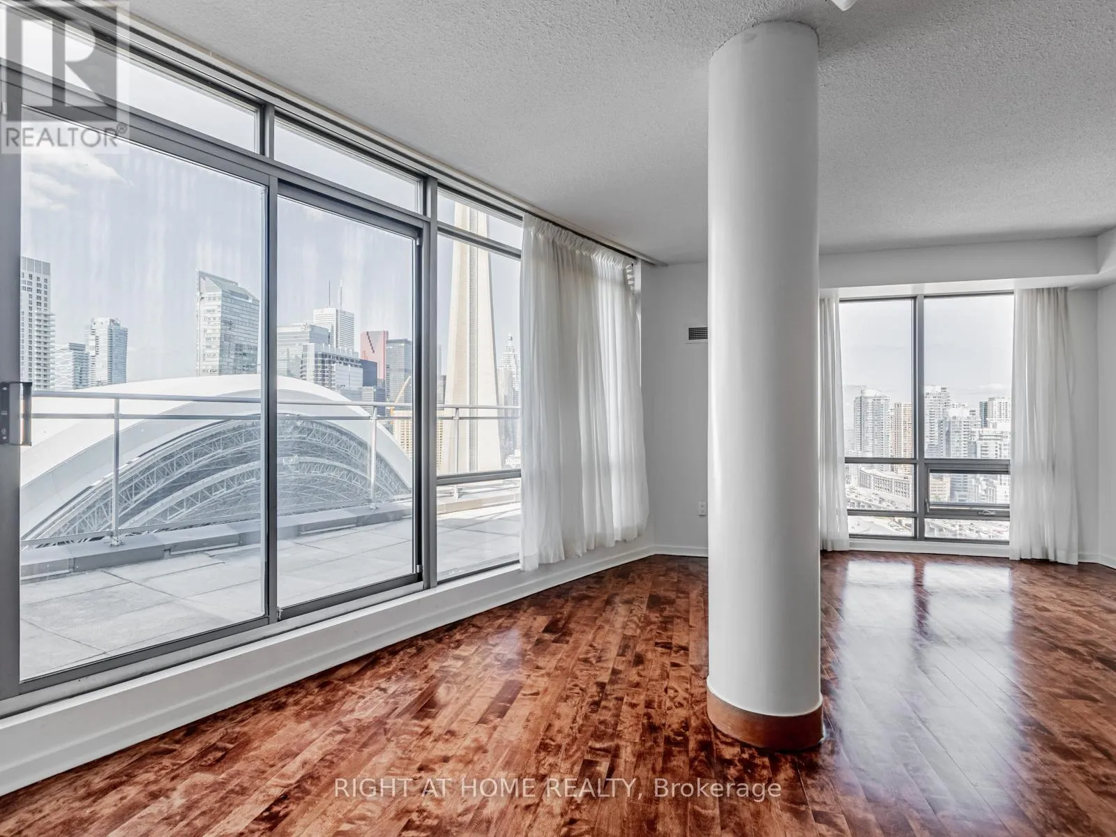 Make this stunning sub-penthouse suite your home! Enviable to a well-placed bachelor, working couple, family or retiree! A 1,263 sq ft corner unit with a 235 sq ft terrace, 10 ft ceilings & wrap around windows for panoramic views of the city, the lake, and CN Tower. Watch baseball games and concerts from your own private terrace when the Rogers