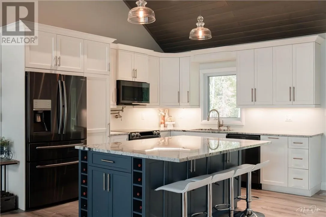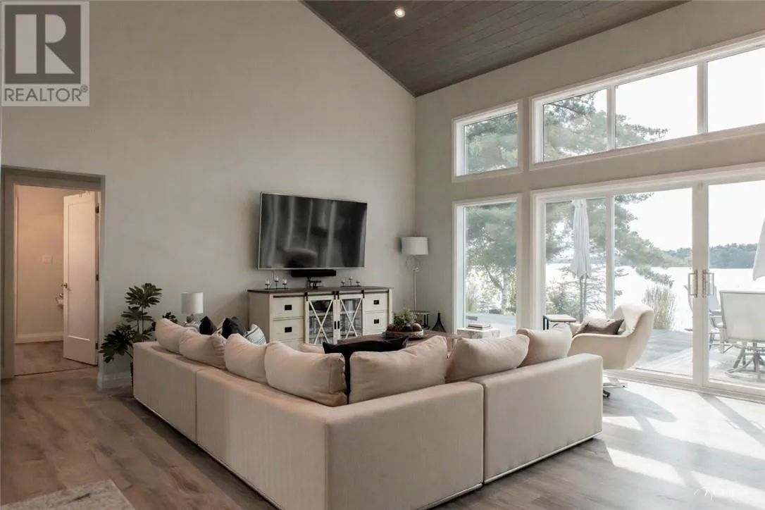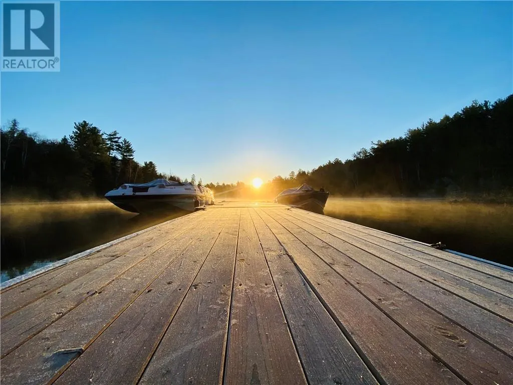 Welcome to your family’s private luxury retreat on the shores of Lake Nepewassi. This rare property is crafted for those who value privacy, space & lakefront living. Accessed by a short 2 km boat ride from your private docking facilities in Estaire, it delivers the perfect balance of convenience & seclusion. This custom 4-season residence showcases soaring 17-ft. ceilings &