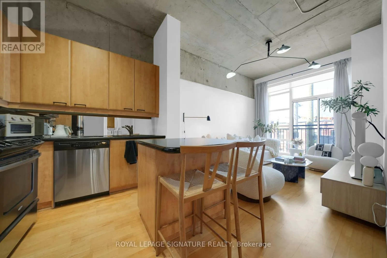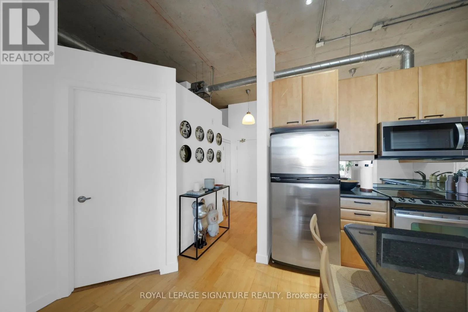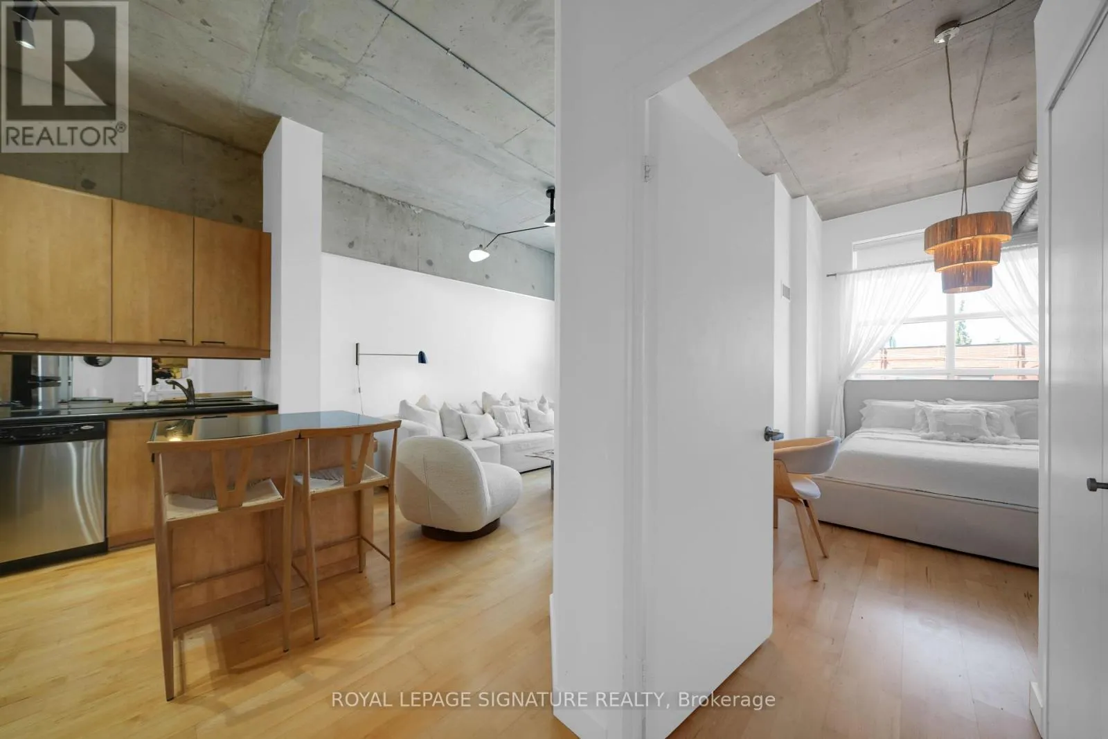 Welcome to the iconic Chocolate Company Lofts in the heart of Queen West. This stylish 1+1bedroom suite (den easily used as a second bedroom or home office) offers just under 700 sq ft of functional living space, complete with parking and locker. Featuring soaring concrete ceilings, warm wood floors, and an open-concept layout, the space blends authentic loft character with