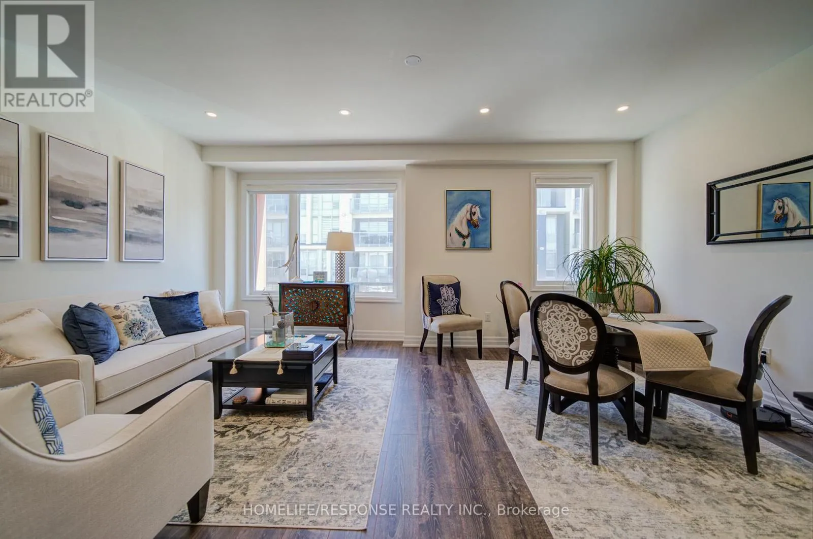 Highly upgraded executive townhouse in the prestigious Preserve community, featuring 3 bedrooms, 3 bathrooms, and a 2-car garage. Beautifully maintained and move-in ready with designer neutral décor throughout. Spacious main living area on the first floor filled with natural light, complete with stylish zebra blinds for adjustable brightness and privacy. Elegant family room with open-concept layout, large windows, tray ceiling,
