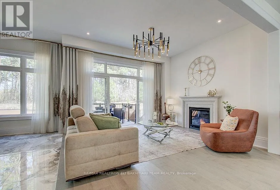 50 Royal Hill a beautifully upgraded residence backing onto a breathtaking RANINE, offering rare privacy, natural beauty, and an exceptional lifestyle setting. Step into a grand foyer that immediately sets the tone for the home, featuring elegant granite flooring, soaring ceilings, and a stunning statement chandelier. The main level is thoughtfully designed with a seamless flow between living spaces, enhanced