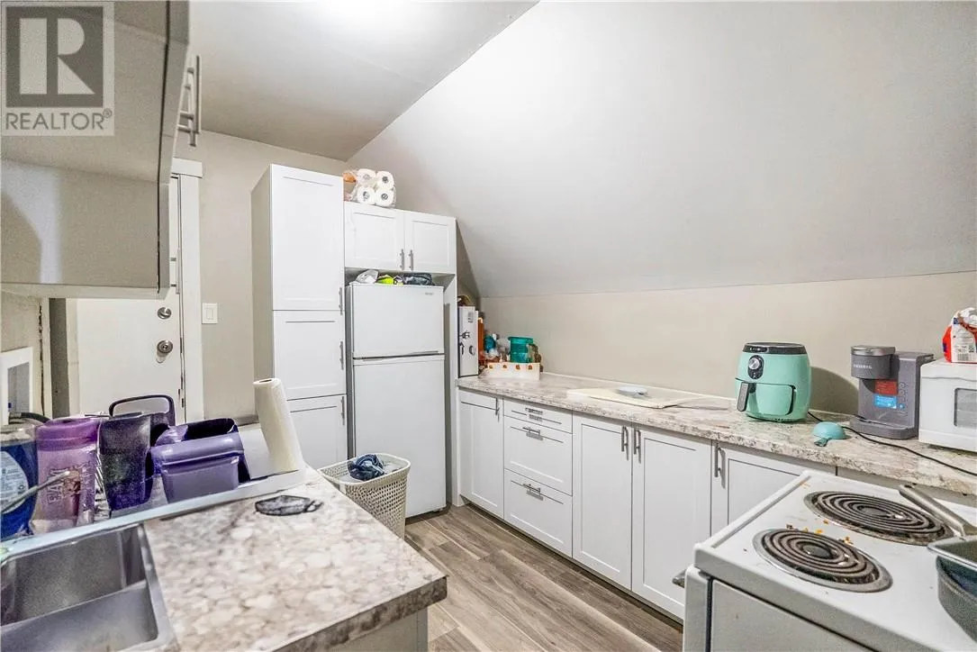 This fully rented, cash-flow-positive 6-unit all-brick apartment building offers immediate income with value-add potential. It includes two 2-bedroom units (with basements for future expansion) and four 1-bedroom units, with three units recently renovated featuring modern finishes and white cabinetry. Features include two natural gas furnaces and a paved driveway. Key upgrades include shingles (2022), fire-rated doors and windows, fire escape