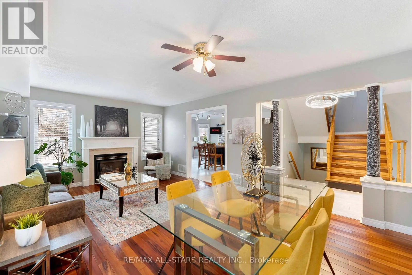 Welcome to this beautifully maintained home nestled in a friendly, family-oriented neighborhood, ideally located close to shopping, schools, and convenient access to Hwy 404. Step inside to an upgraded kitchen featuring quartz countertops, stylish backsplash, and quality finishes-perfect for everyday living and entertaining. The main floor showcases elegant engineered hardwood flooring, adding warmth and sophistication throughout. Enjoy seamless indoor-outdoor living