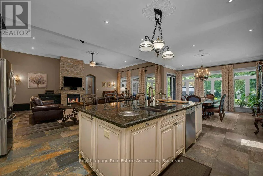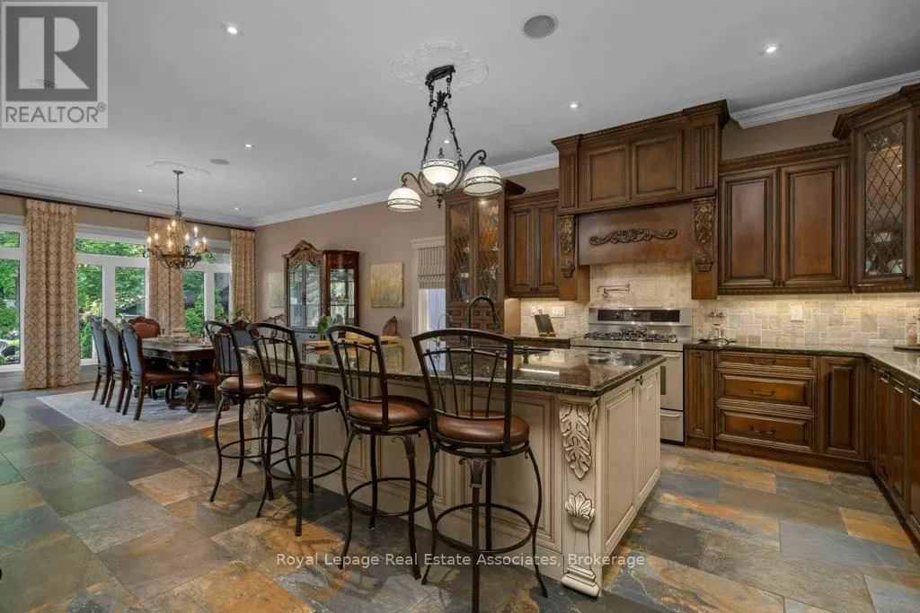 Welcome to 46 Scott Street a truly exceptional custom bungalow designed with care, craftsmanship, and every detail thoughtfully considered. The open-concept main floor features a stunning chefs kitchen with granite island, double sink, two ovens, 5-burner gas range, pasta pot filler, water filtration, pot lights, built-in speakers, and wine fridge all flowing into a spacious great room with 12′ ceilings,